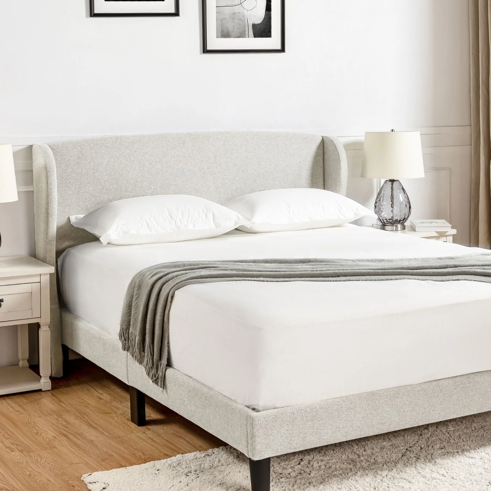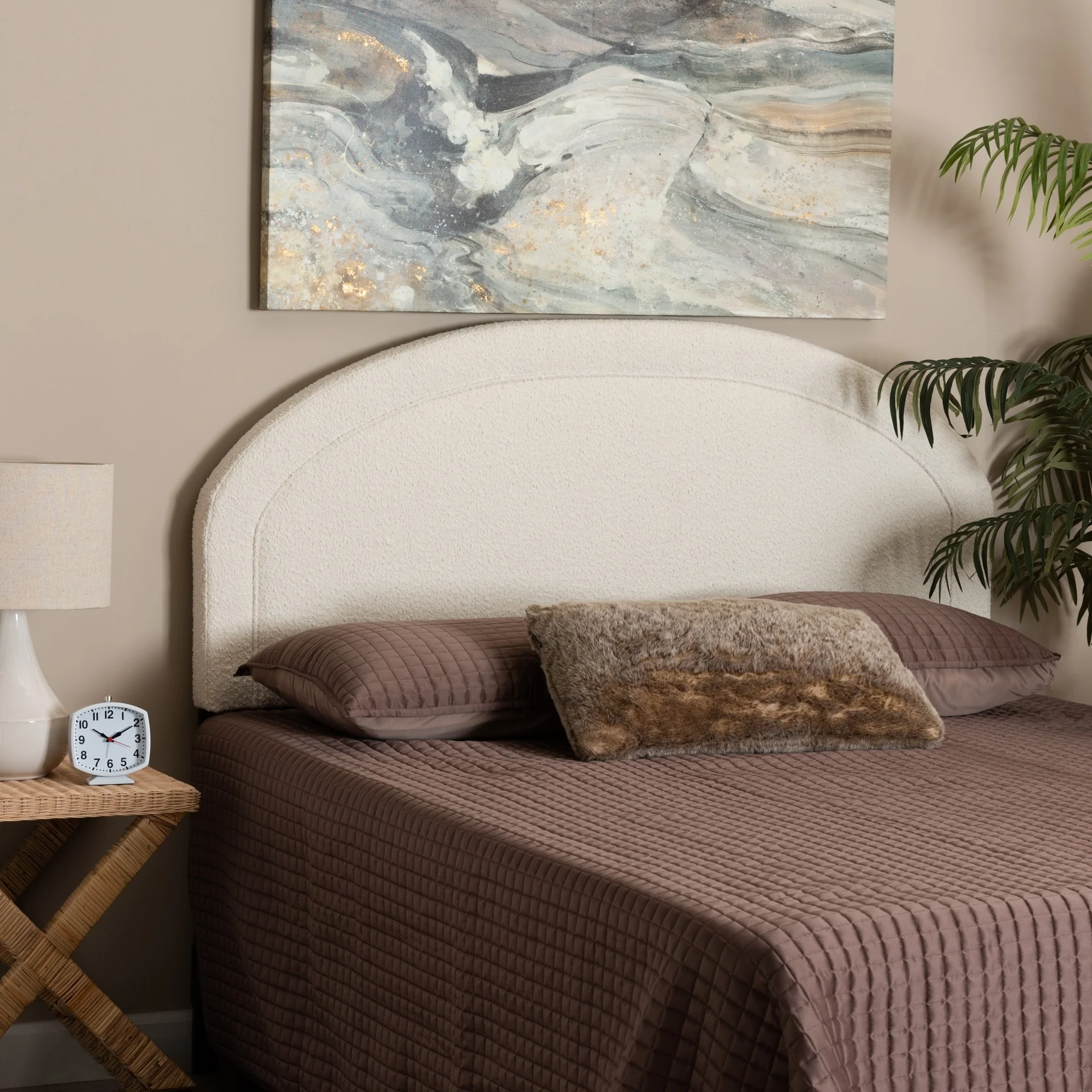 Fiana Modern Cream Boucle Fabric Queen Size Headboard