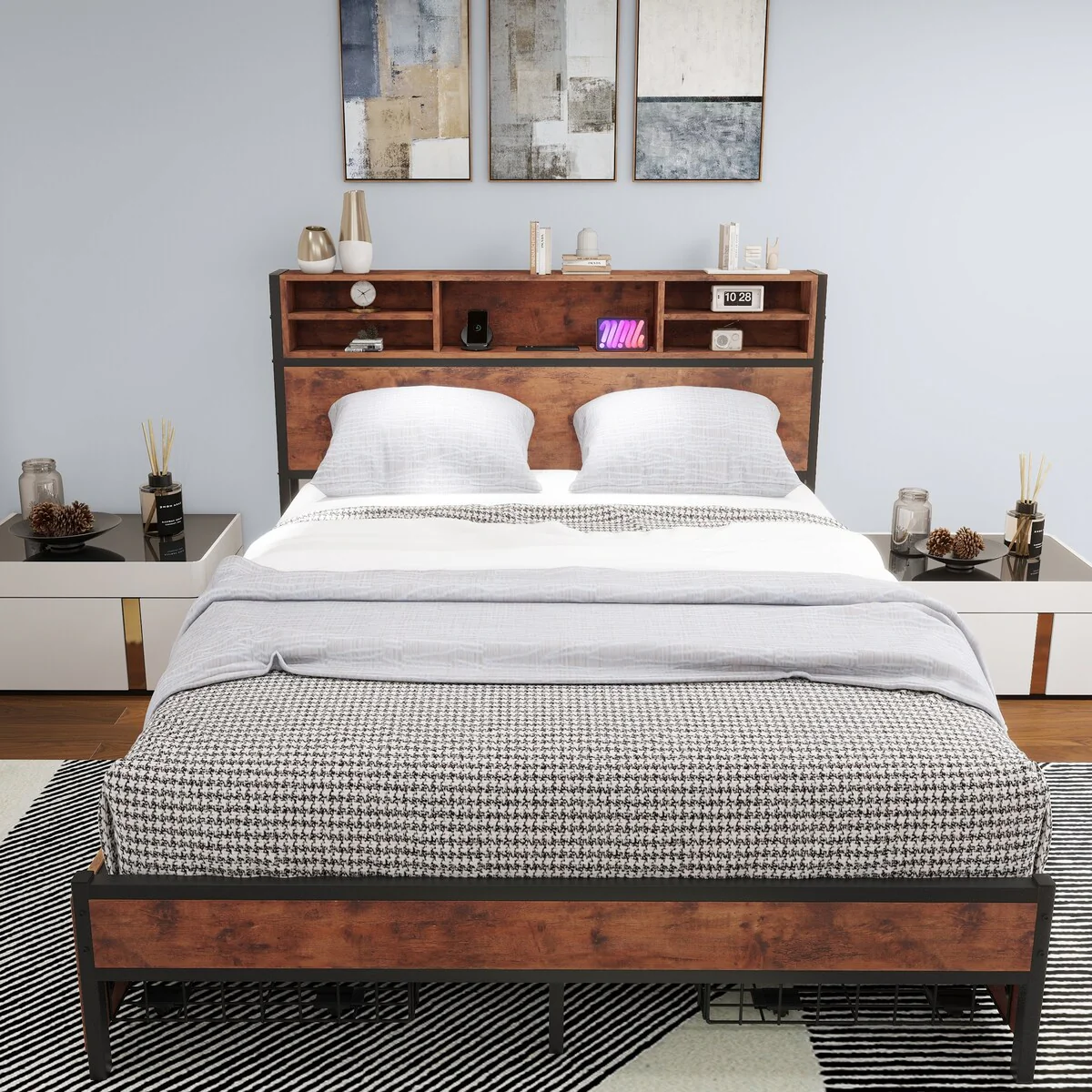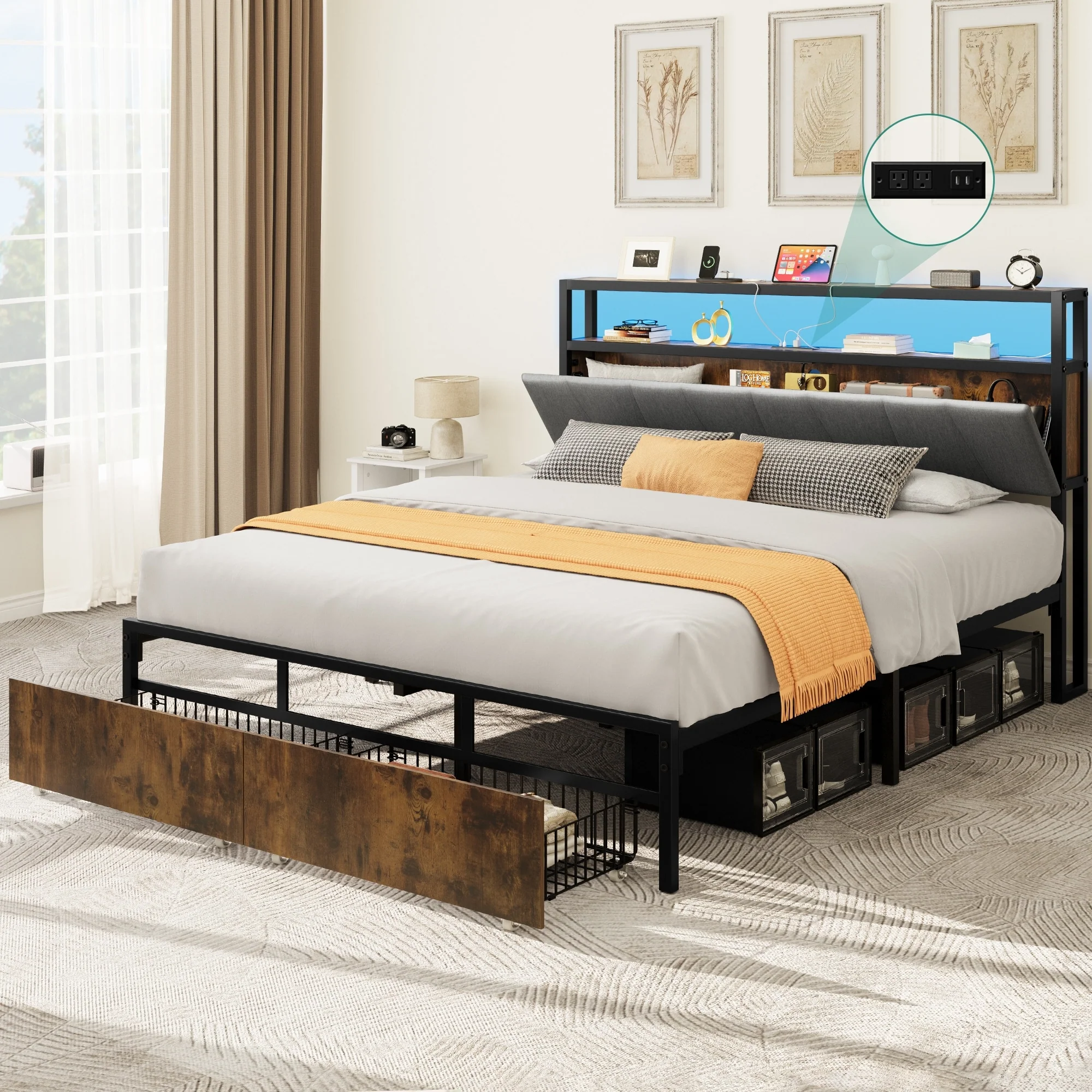 Queen Storage Bed Frame Upholstered Headboard Platform Bed