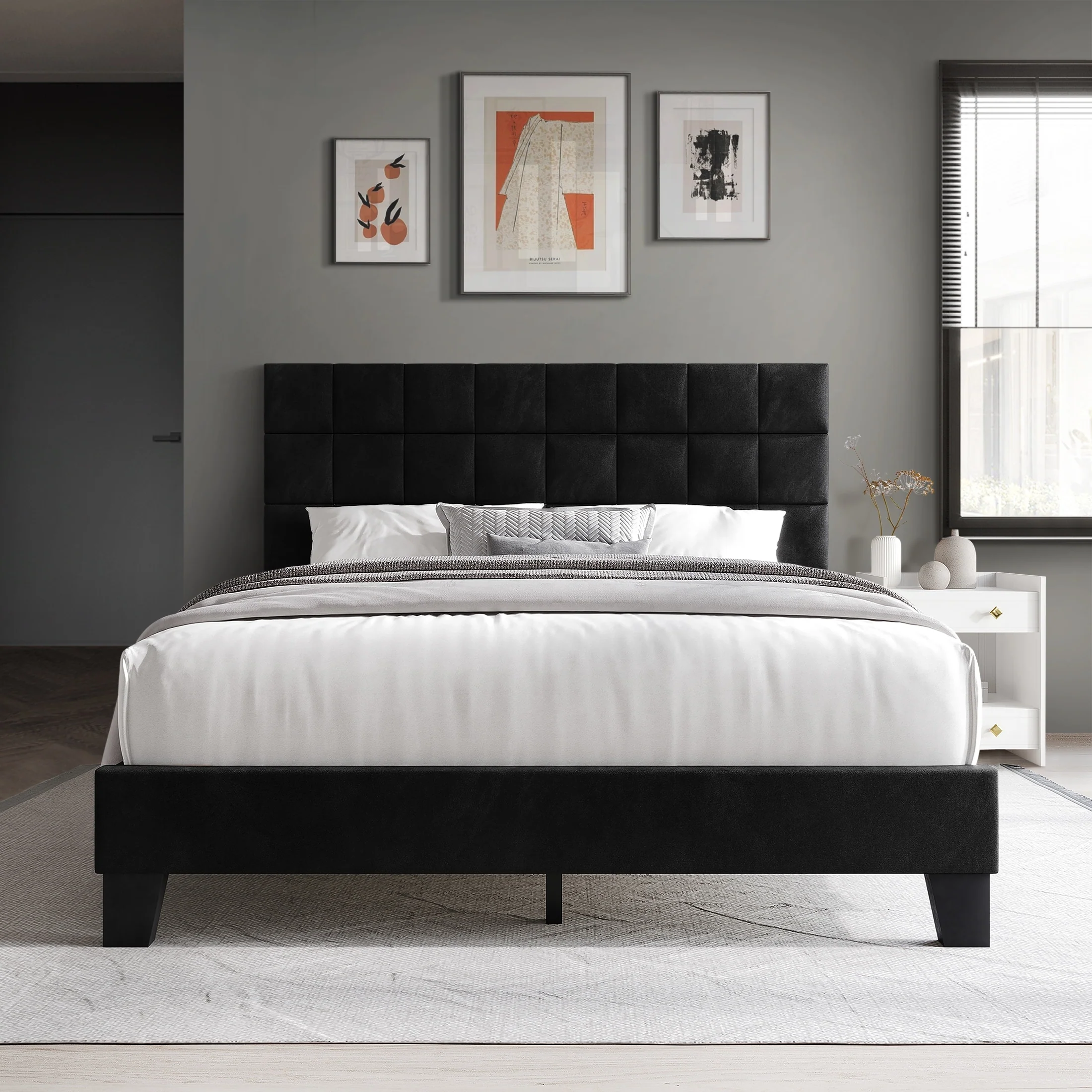 Ceets Sleek and Modern Velvet Upholstered Parlay Bed Frame