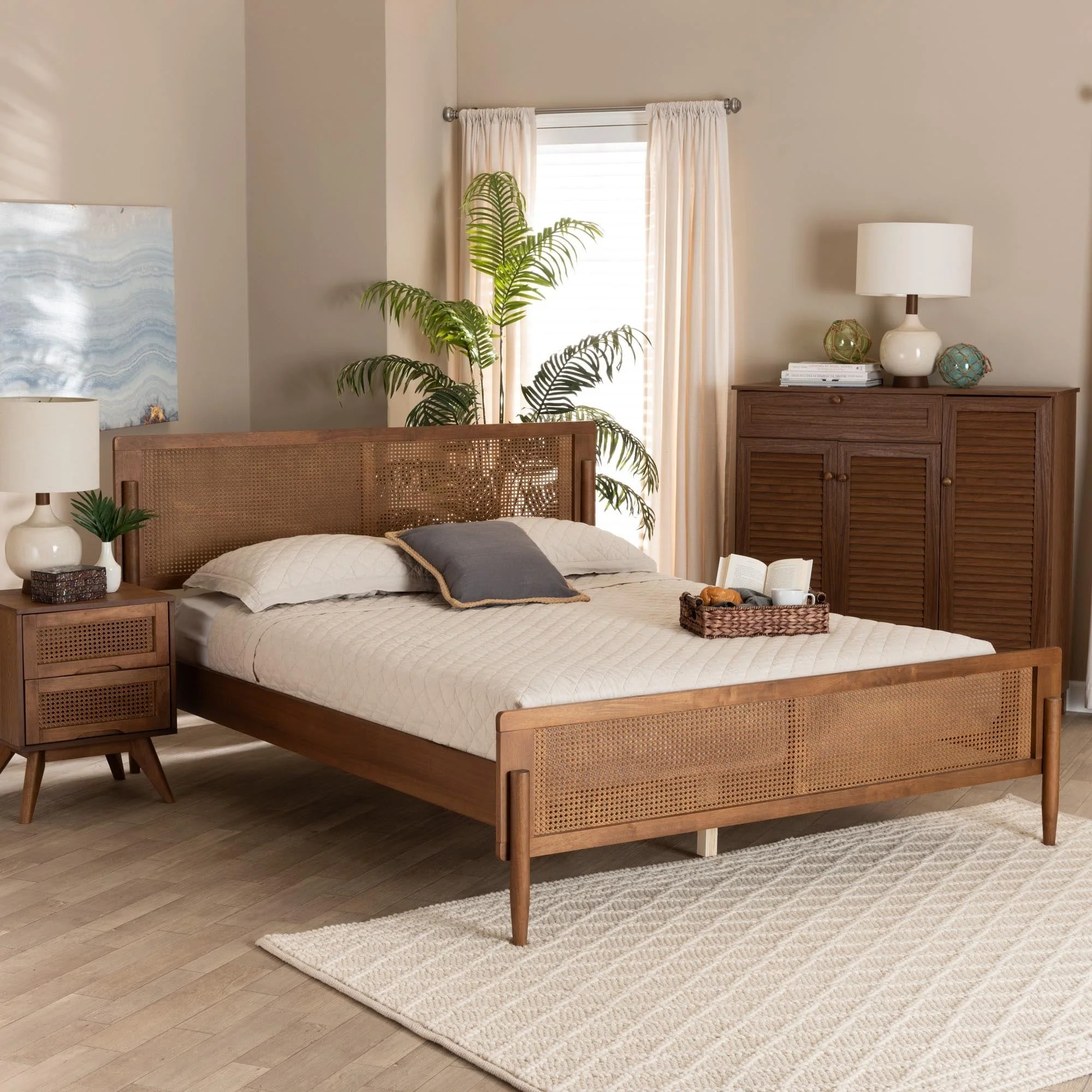 Gardwin Mid-Century Modern Ash Walnut Finished Wood Platform Bed