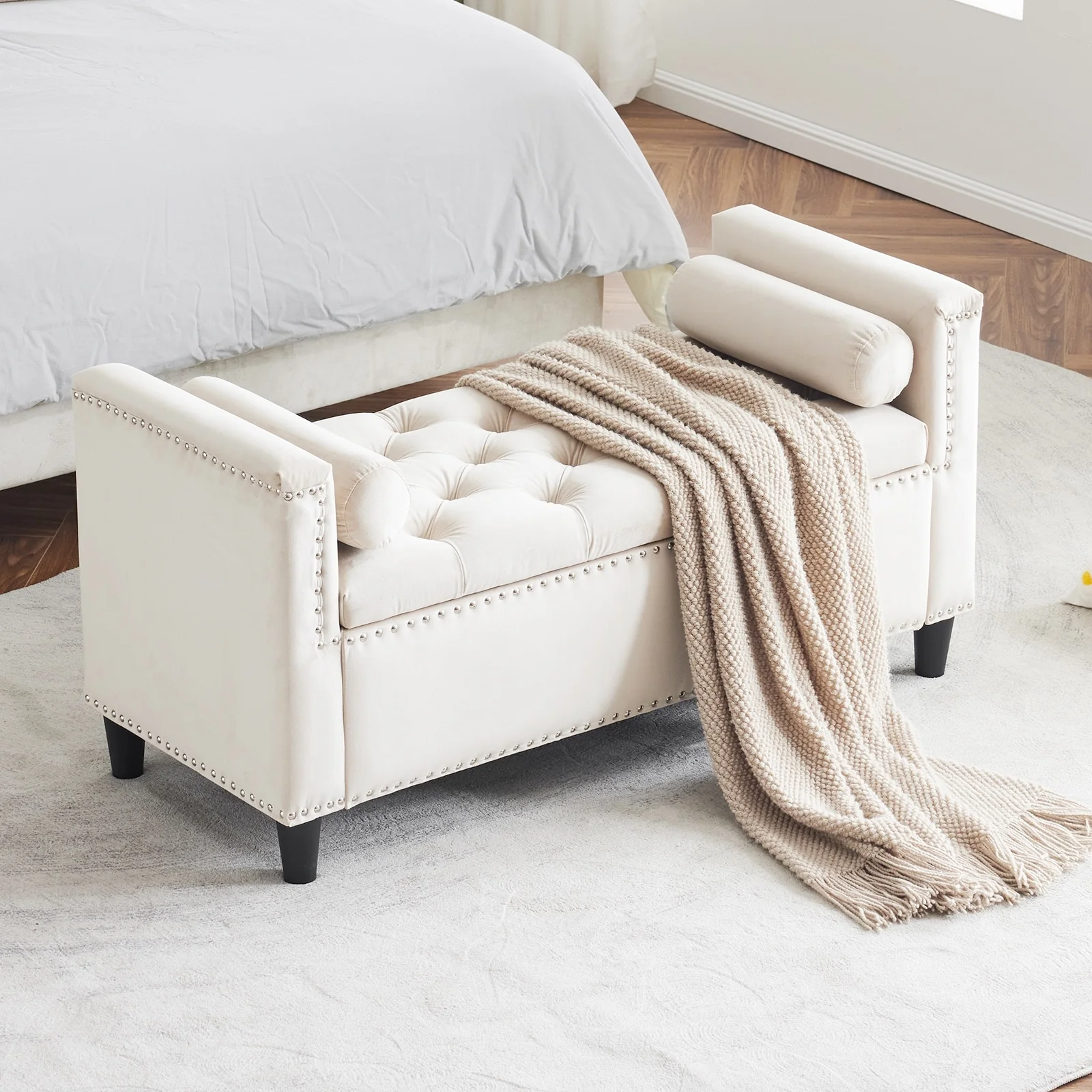 Versatile Velvet Upholstered Storage Bench for Home Decor