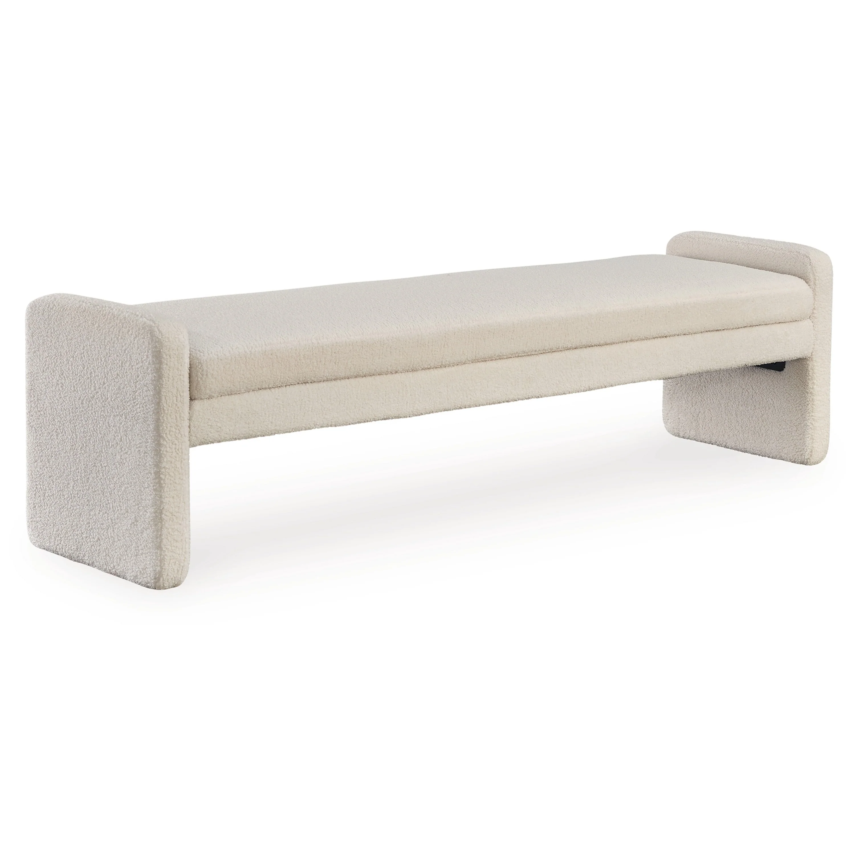 Accent Bench, 71 Inch, Plush Faux Shearling Upholstery, Ivory White