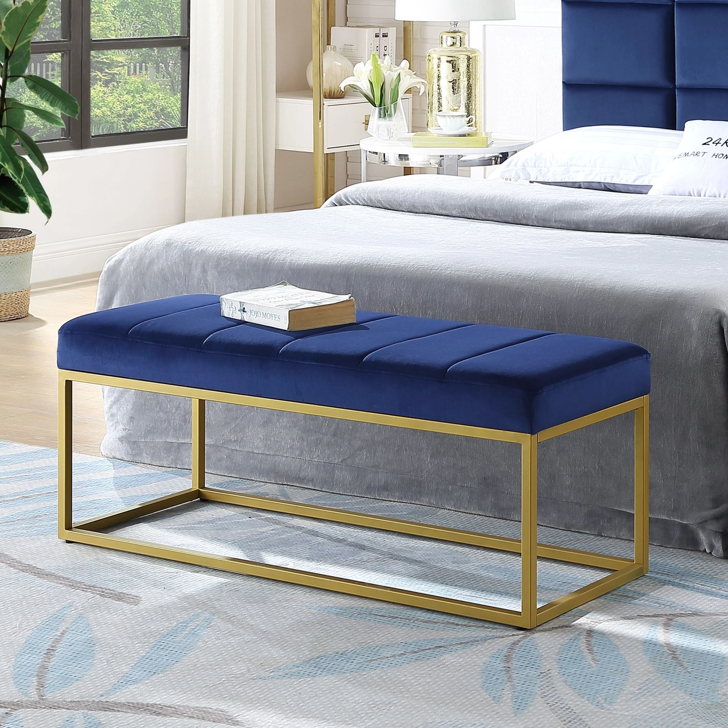 Velvet Upholstered Bed End Bench with Metal Frame