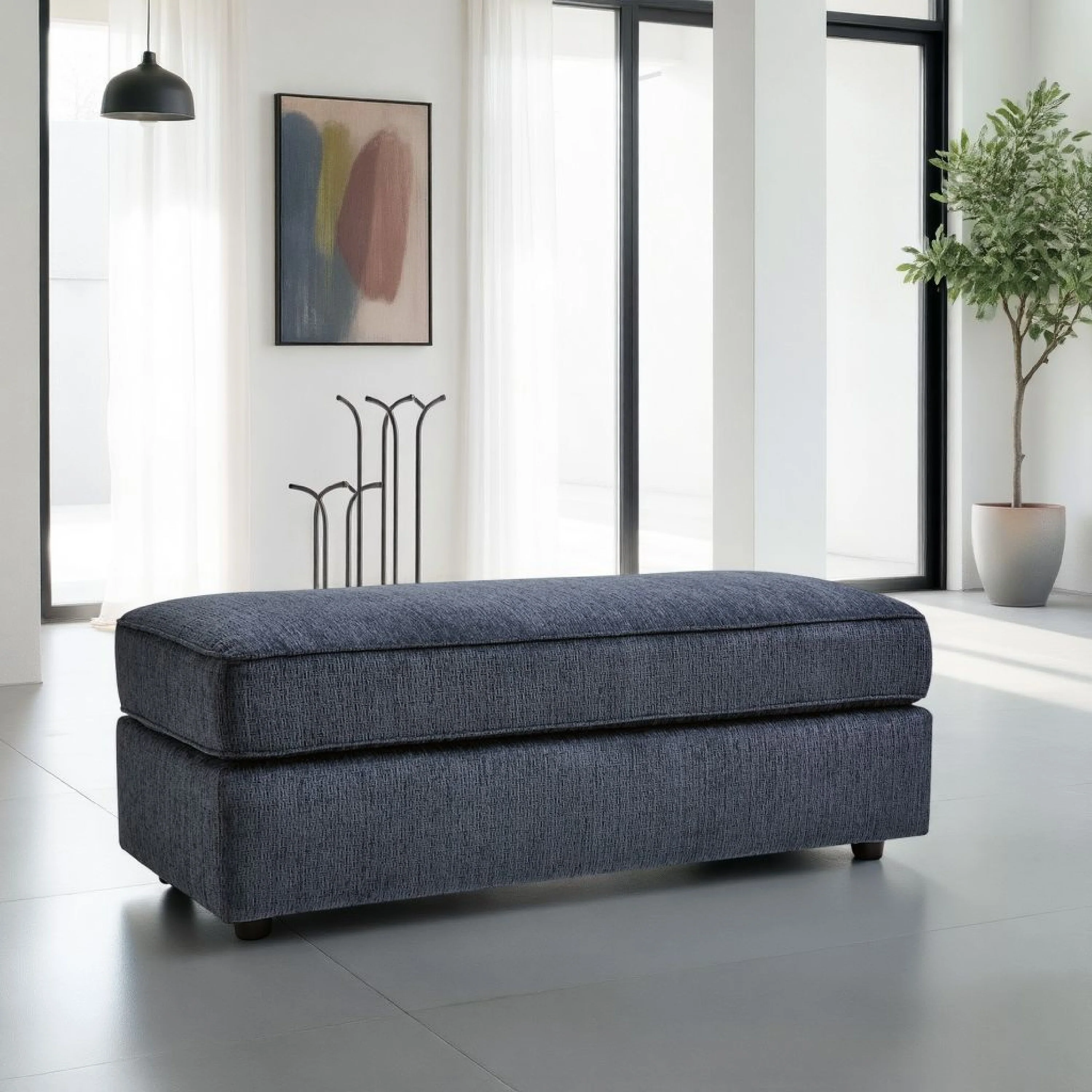 Alfie Oversized Ottoman Bench, Blue Polyester, 43 Inch Rectangular