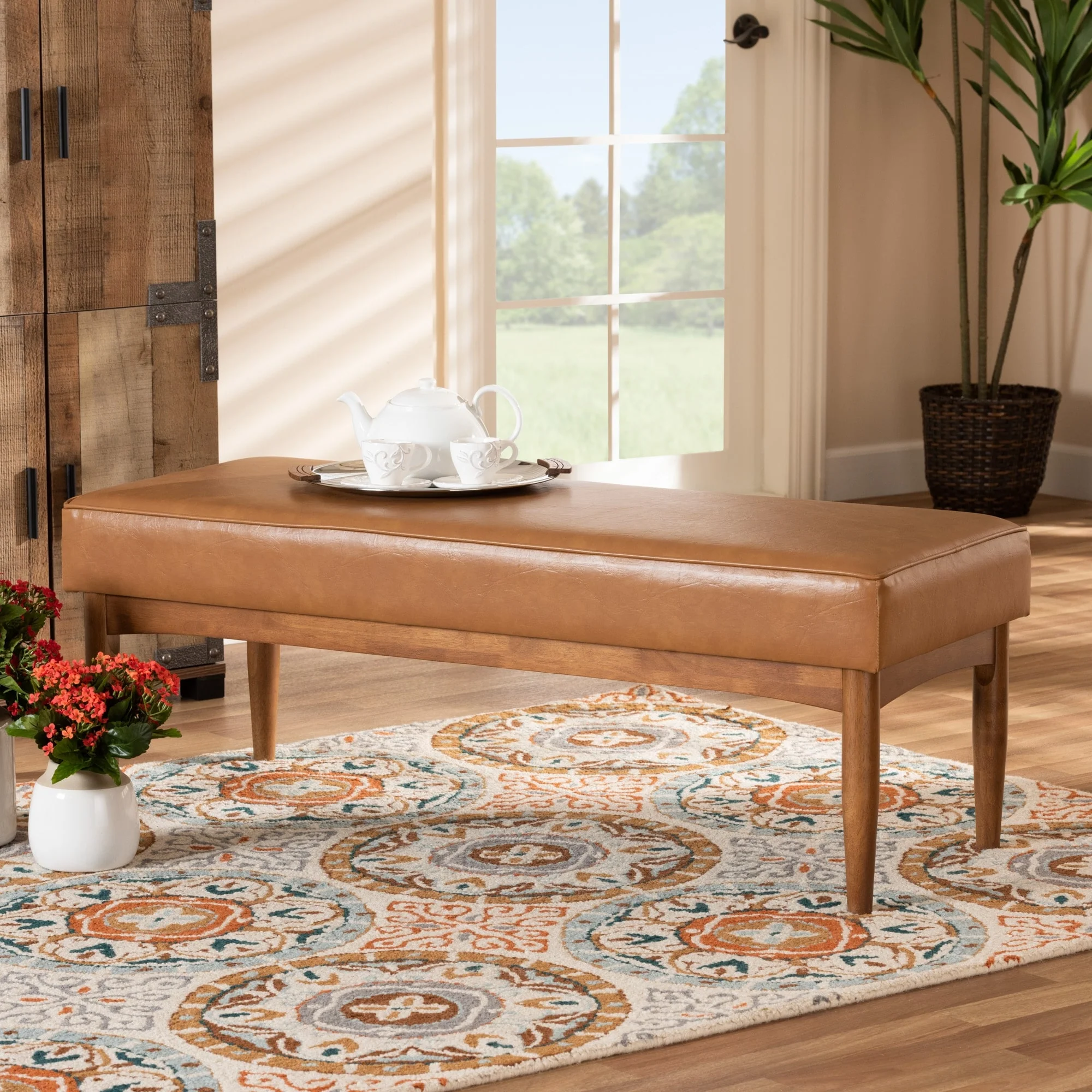 HomePop upholstered Bench with Wood Base