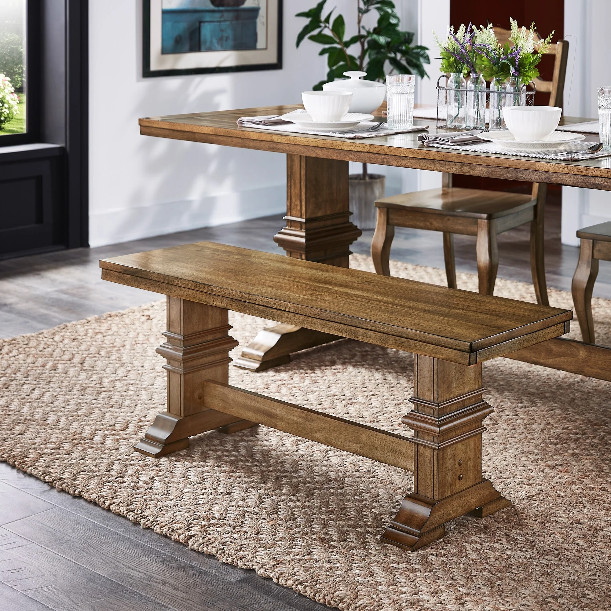 Ronda Two-Tone Trestle Leg Wood Dining Bench