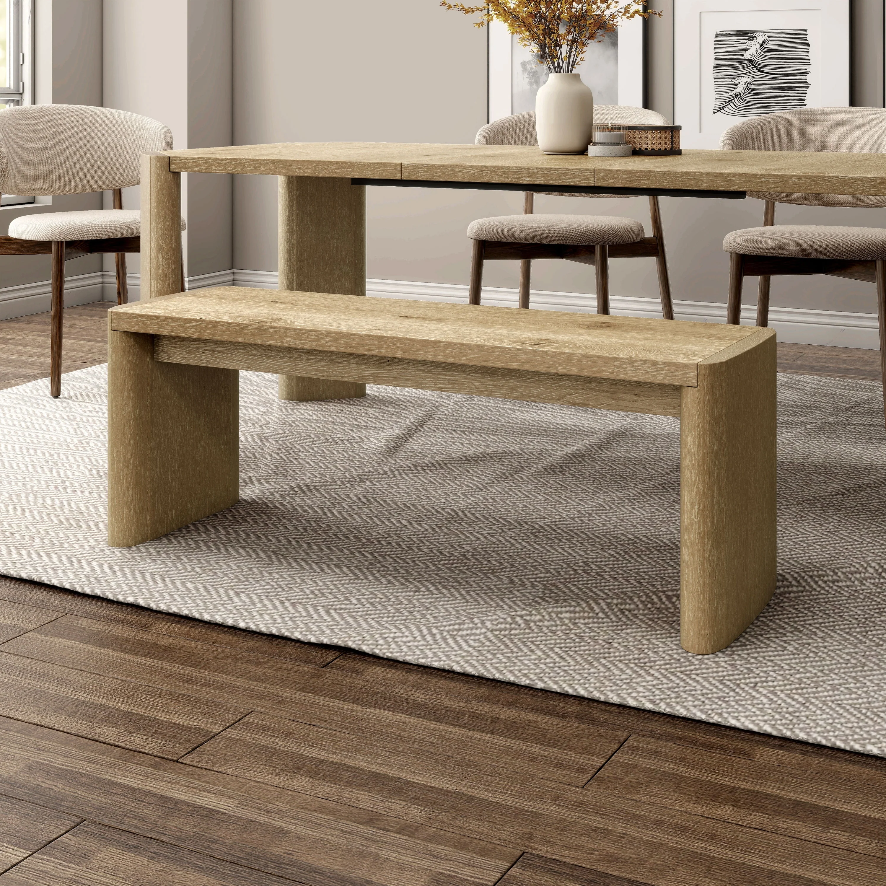 Plank and Beam Solid Wood Modern Dining Bench - 61