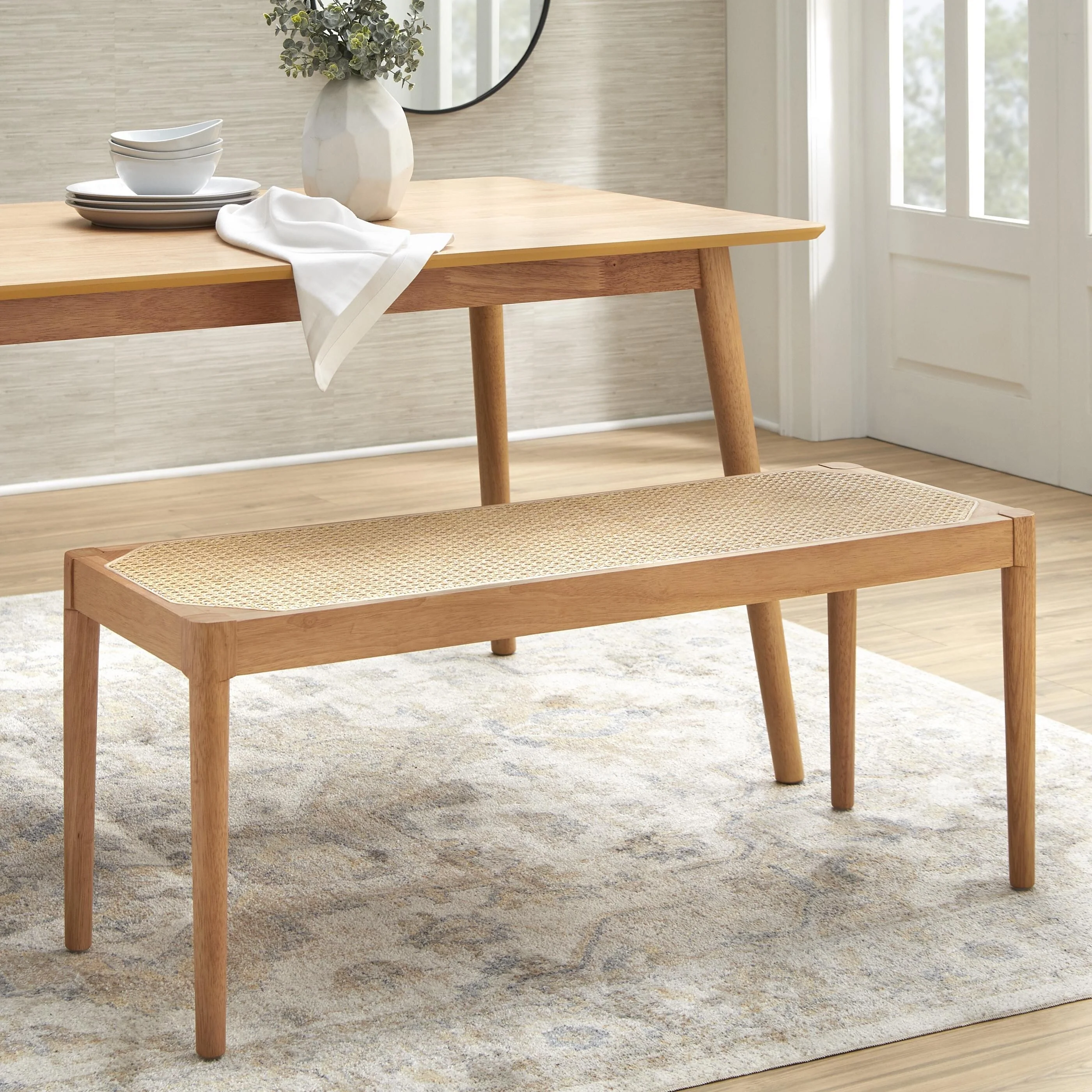 Simple Living Newington Solid Wood Bench with Cane Seat