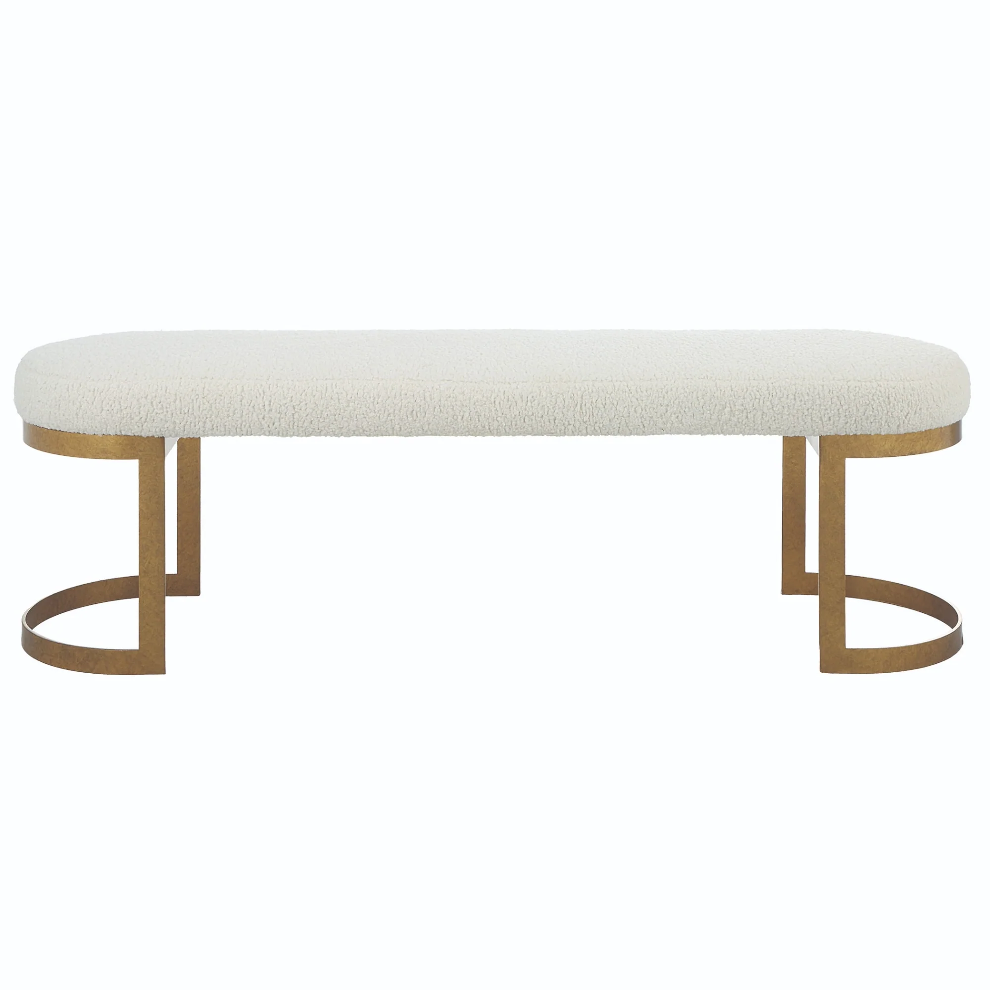 Shearling Top Bench with Hand Forged Base - 60 - White and Gold