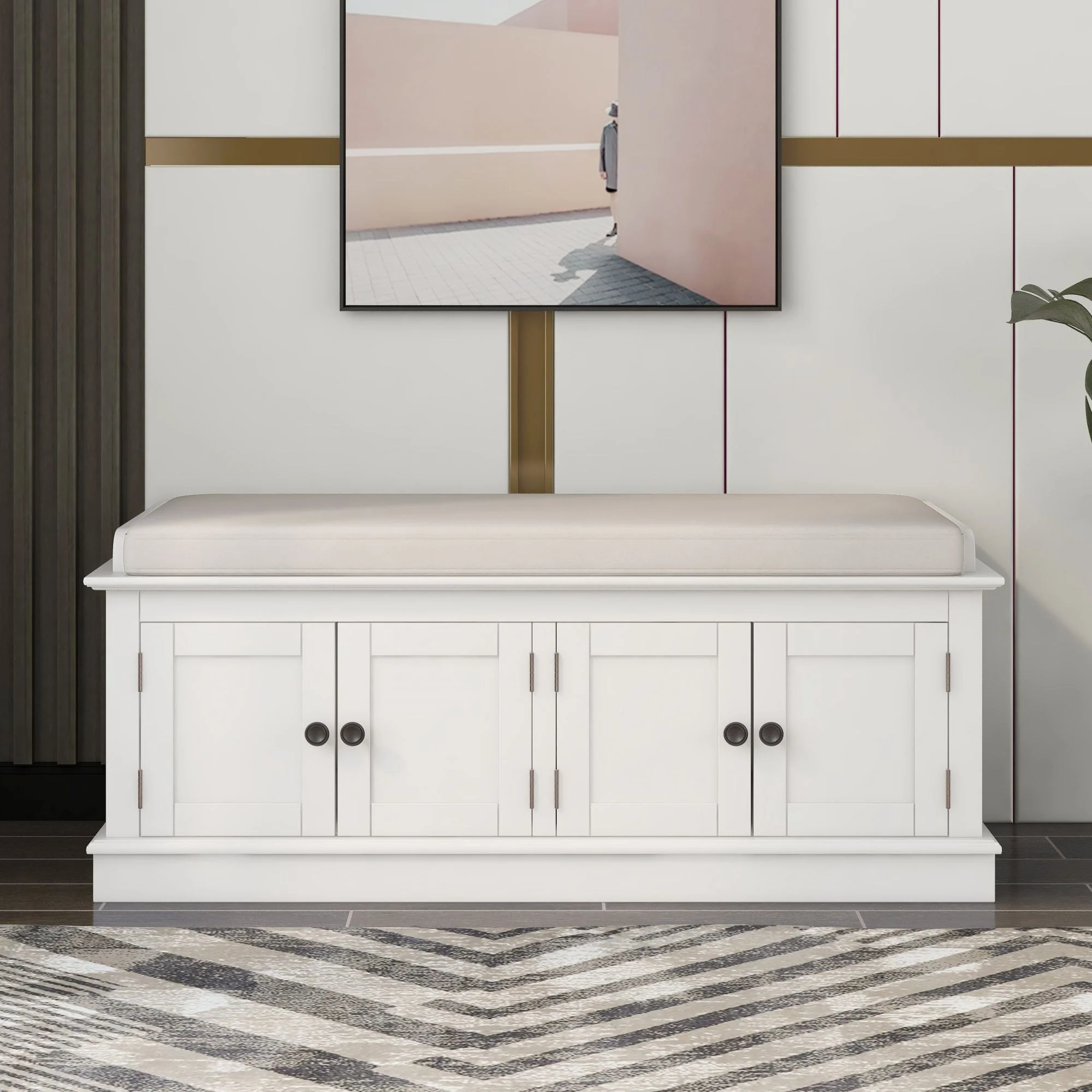 Storage Bench with 4 Doors and Adjustable Shelves