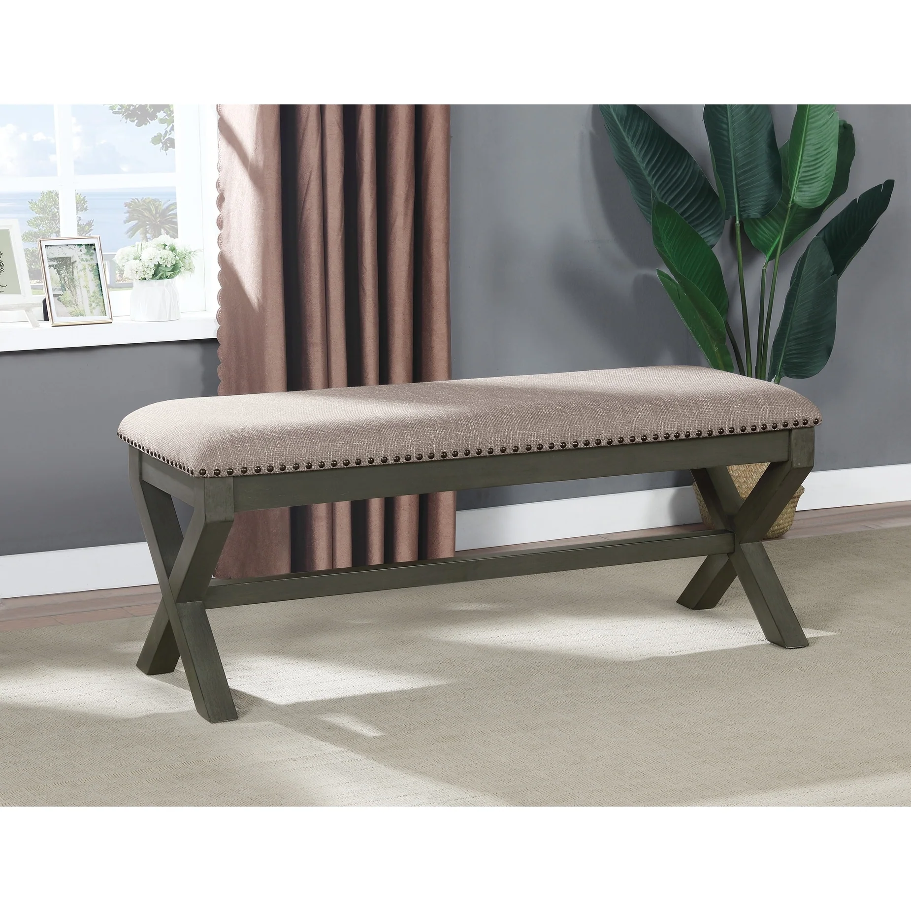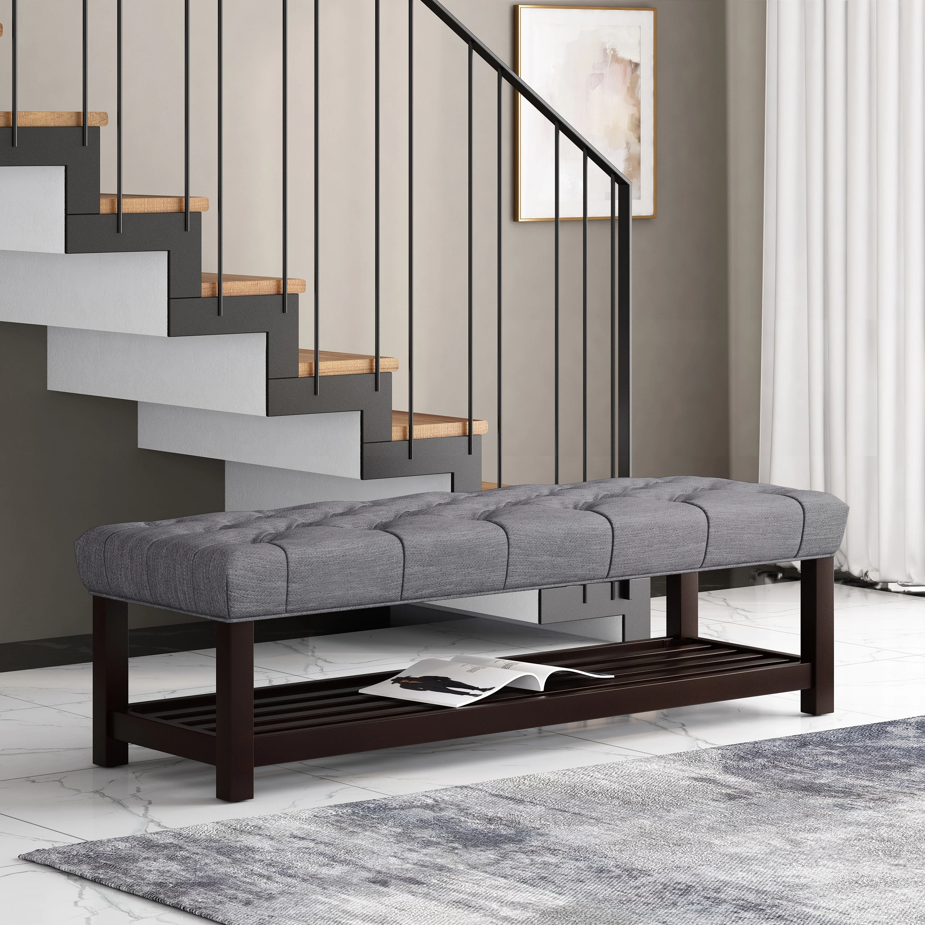 Wooden Framed Tufted Rectangular Bench - 59.25