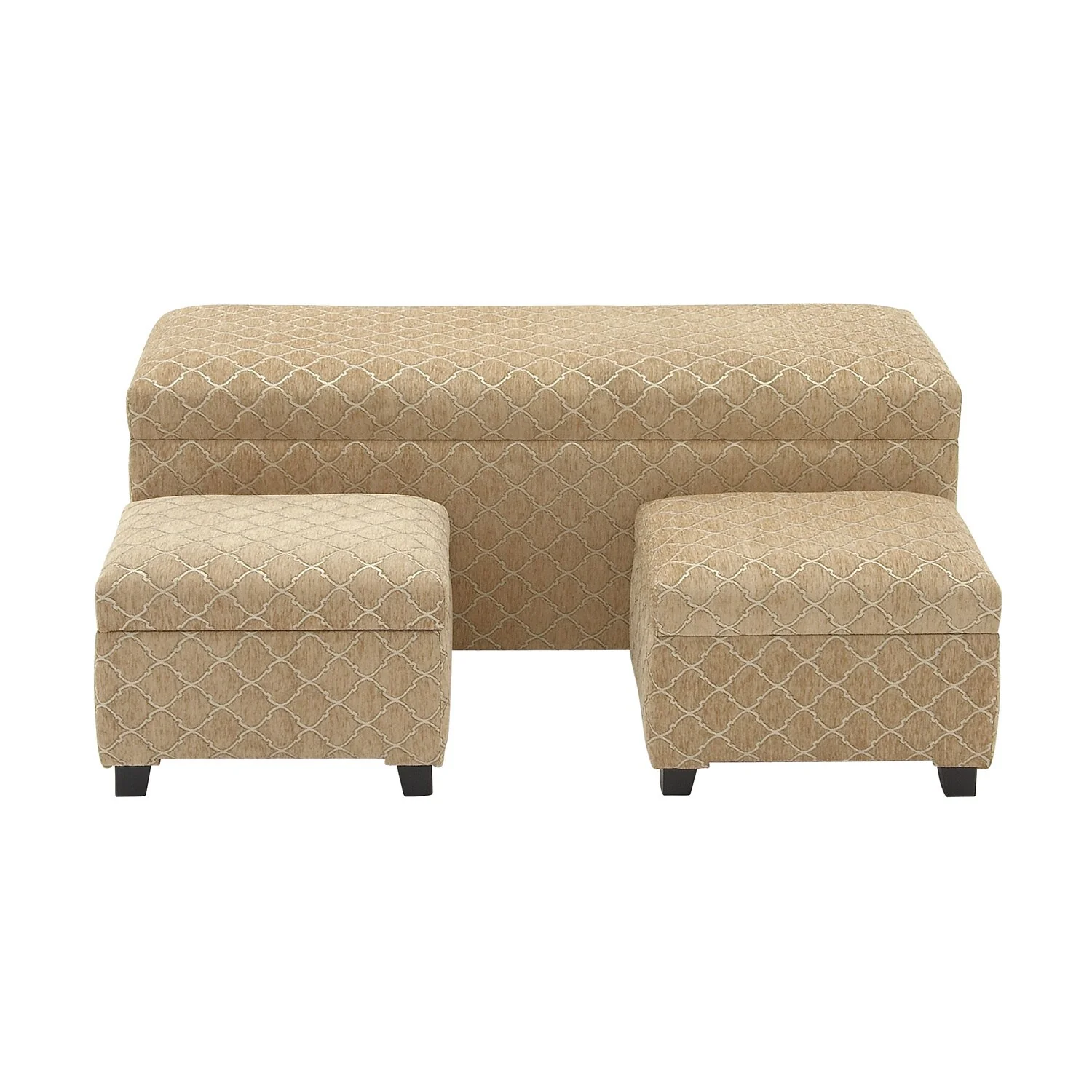Wood and Beige Fabric Storage Bench Set