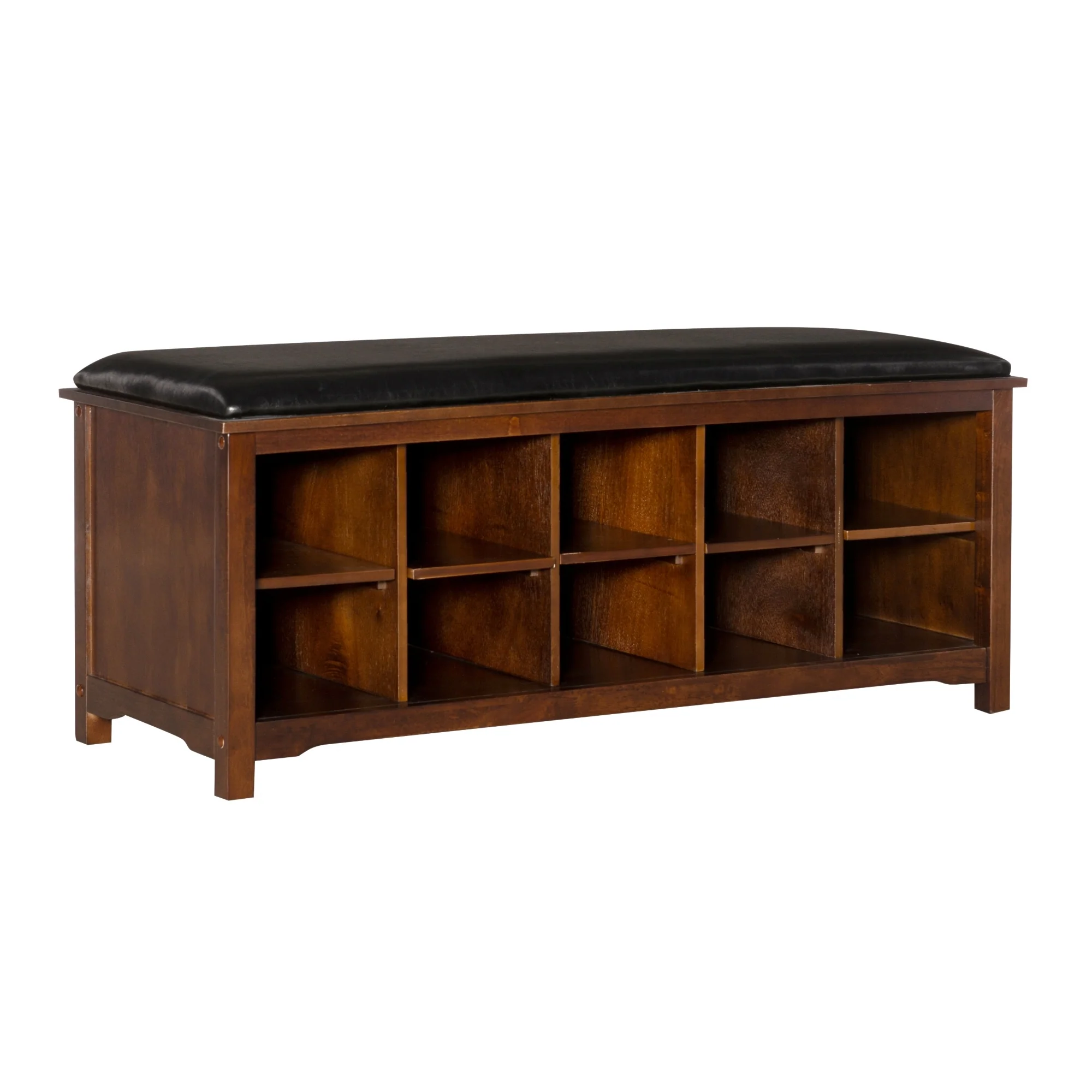 Upholstered Bench with Ten Storage Cubes - 45 - Brown