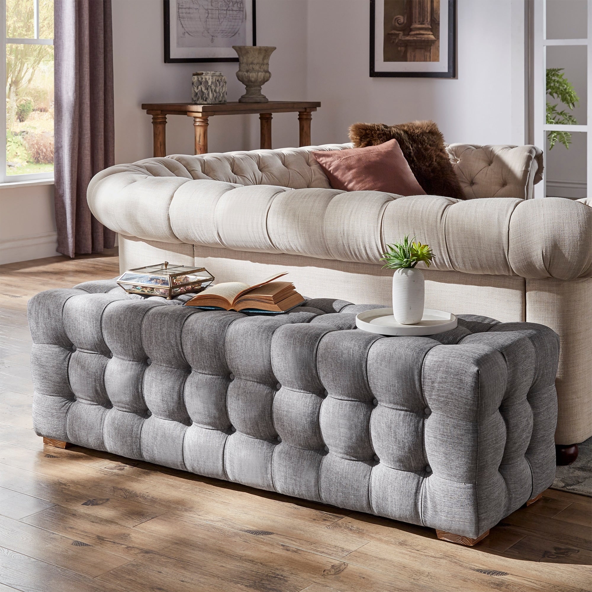 Gdansk Linen Fabric Tufted Bench