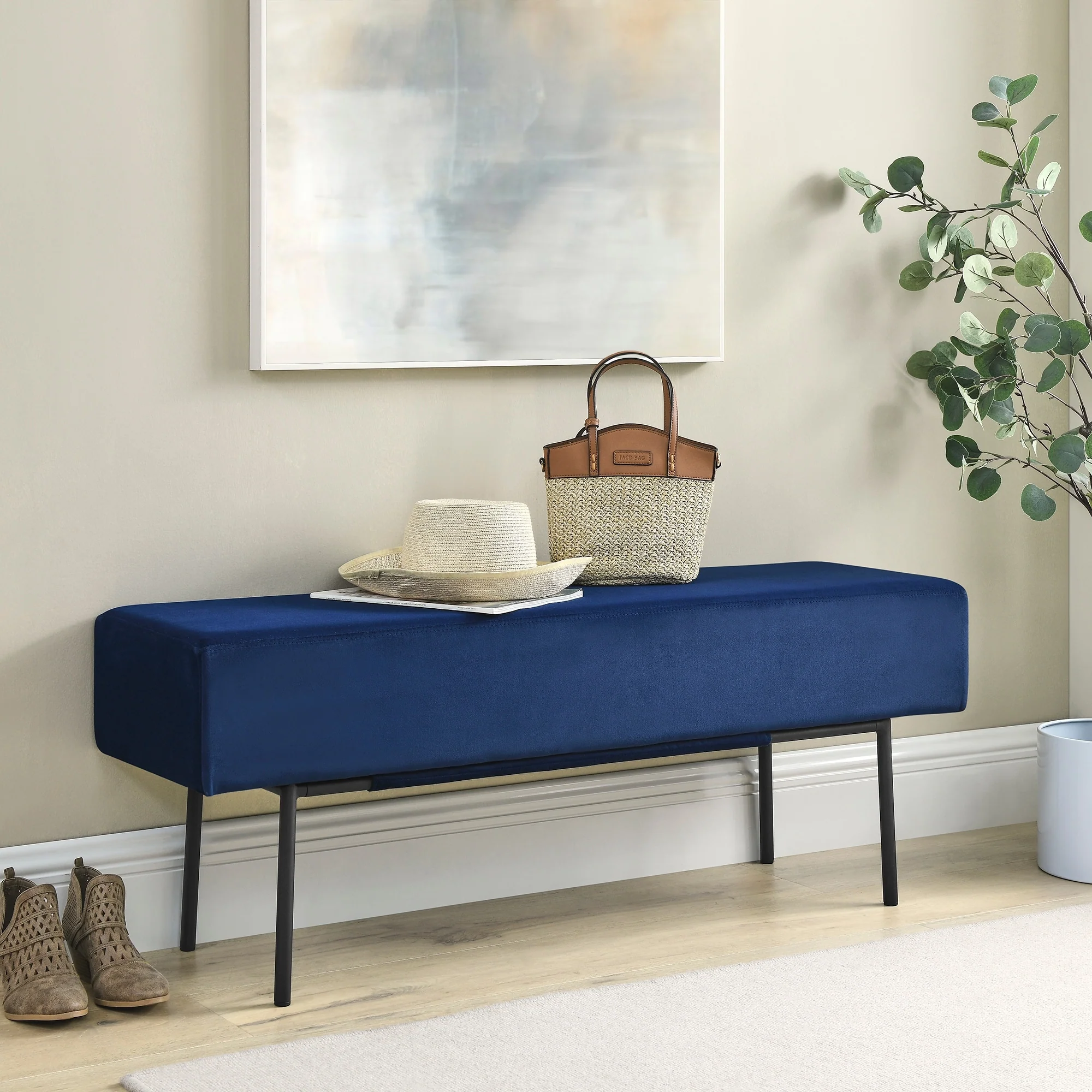 Contemporary Style Bedroom Velvet Upholstered Bench