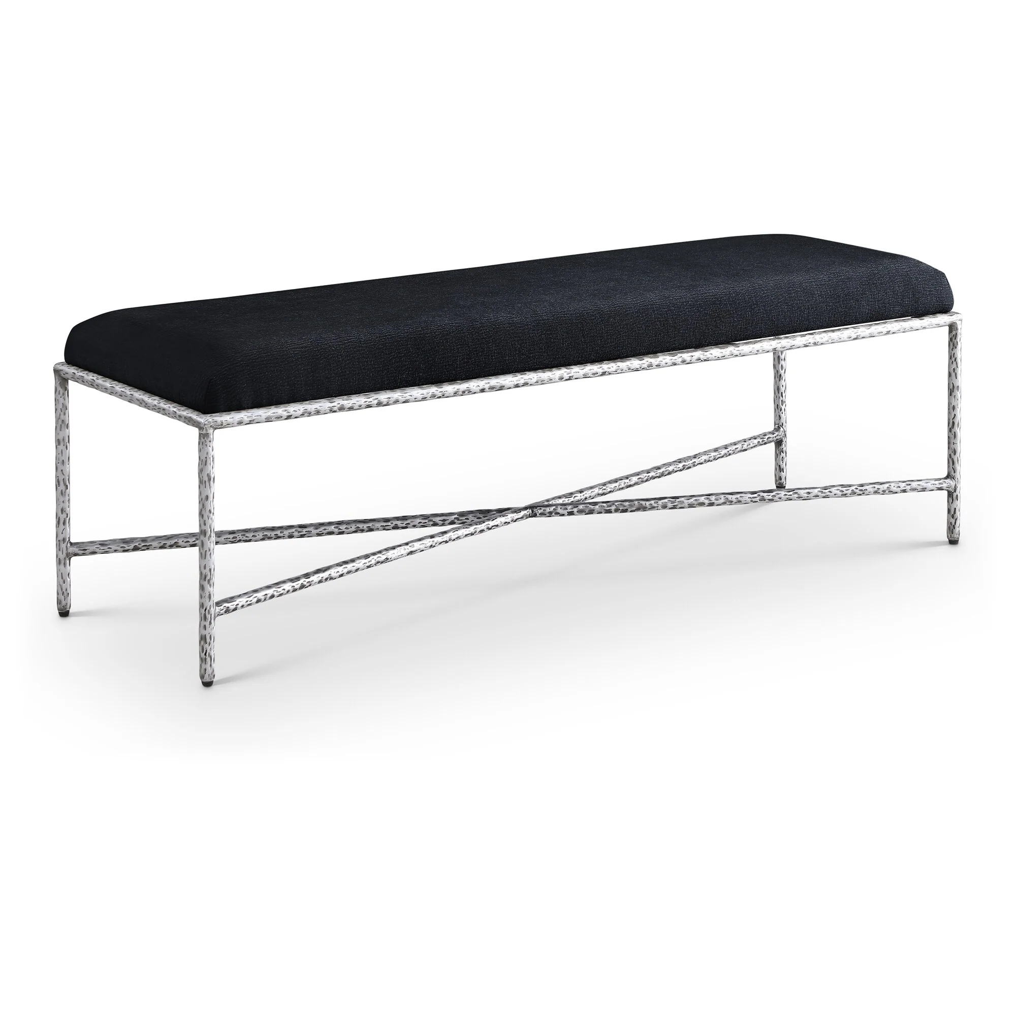 Valley Chenille Fabric Bench with Silver Finish