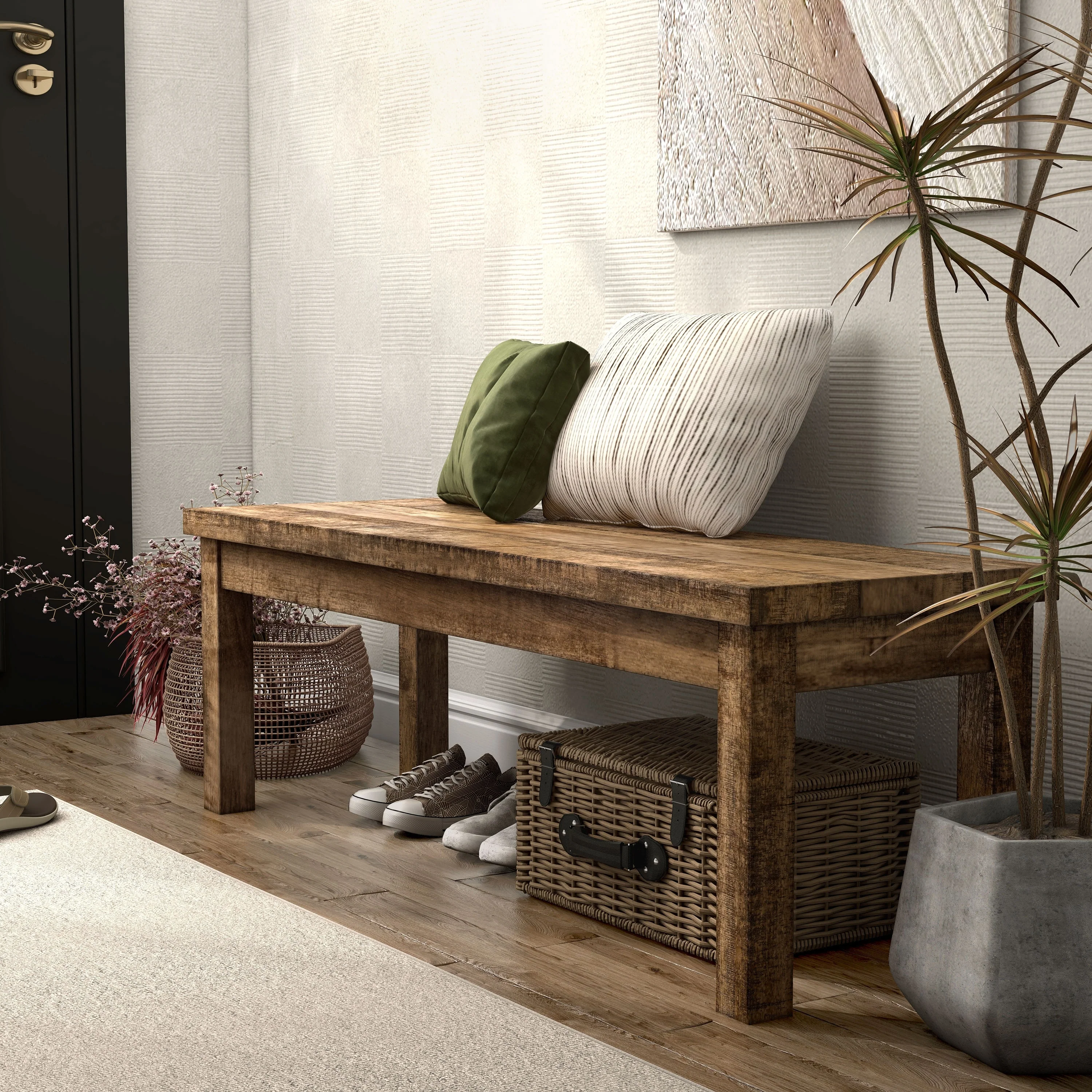 Farmhouse Storage Narrow Hallway Bench with Wood Legs