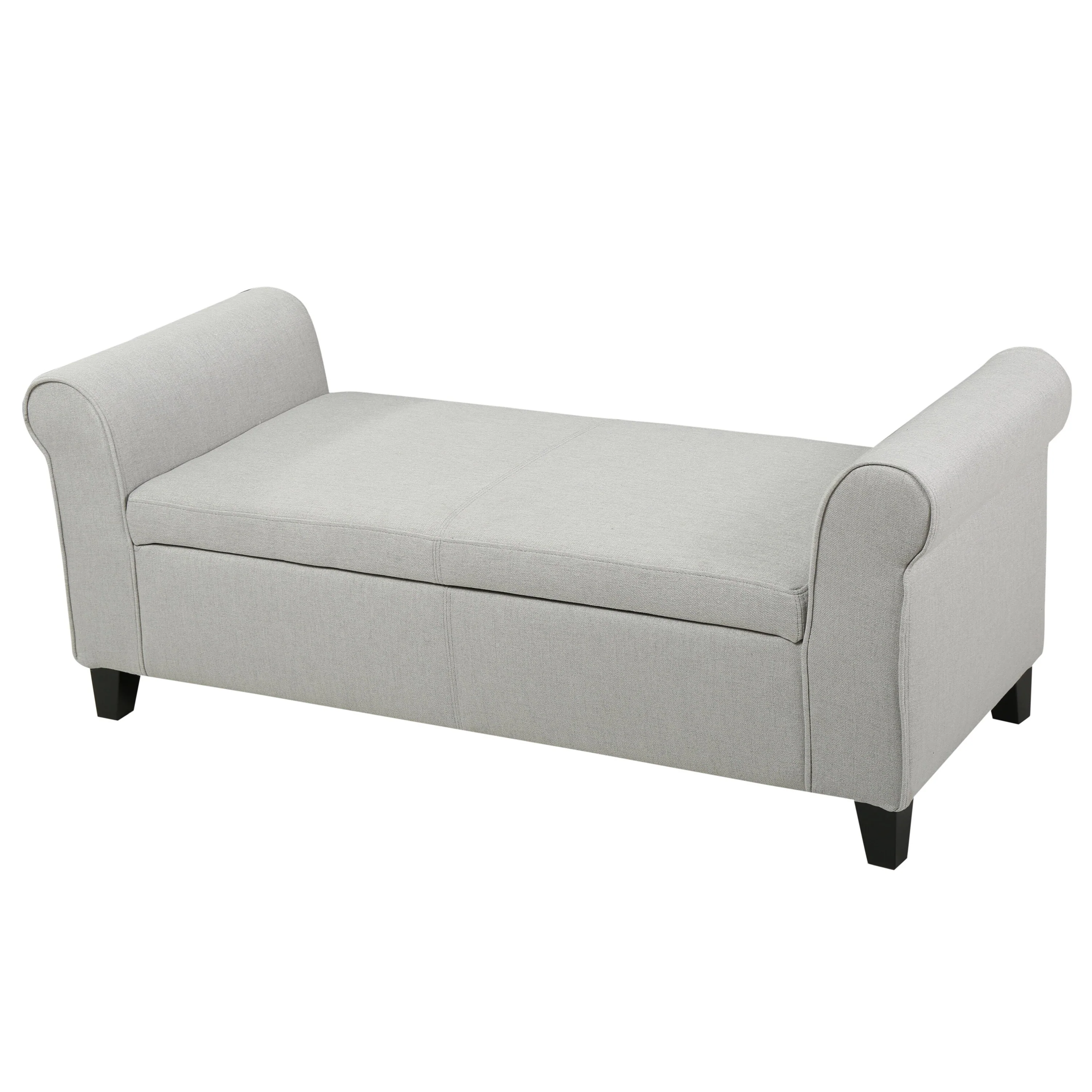 Jacob Bench with Rolled Arms, 50 Inch, Lift Storage, Light Gray