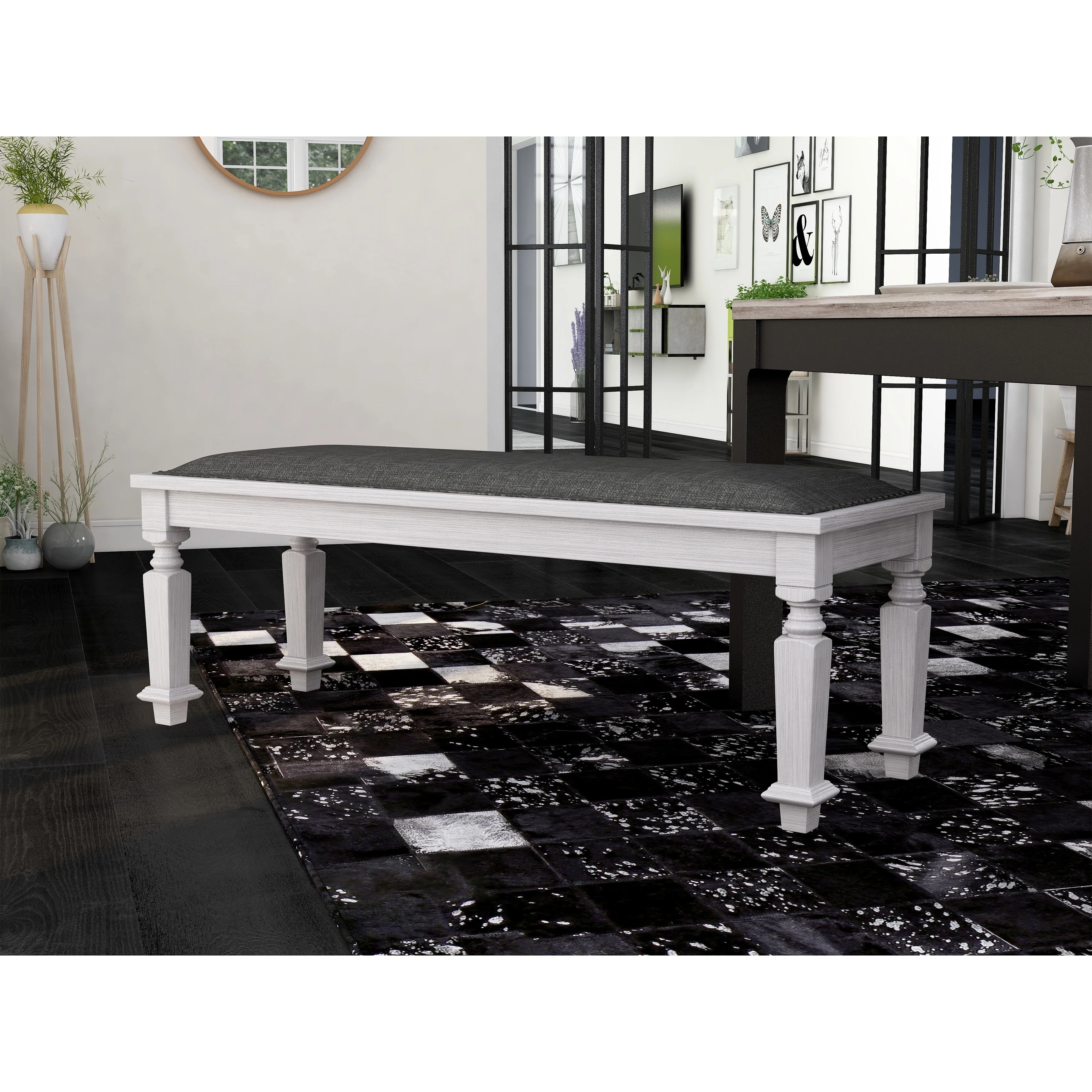 Iron Framed Upholstered Cushion Bench - 50.5 - White and Black