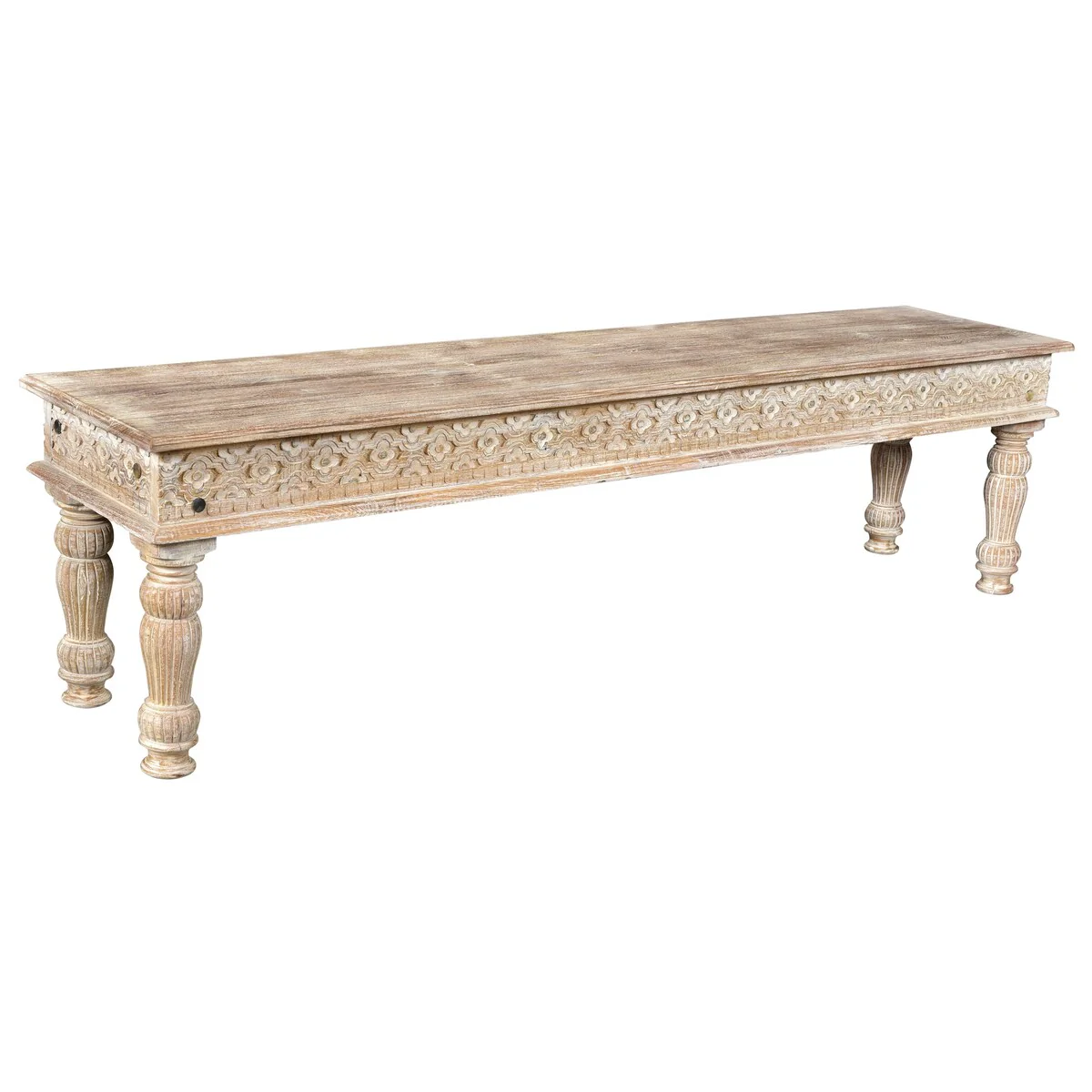 Providence 58-inch Carved Teak Dining Bench - White