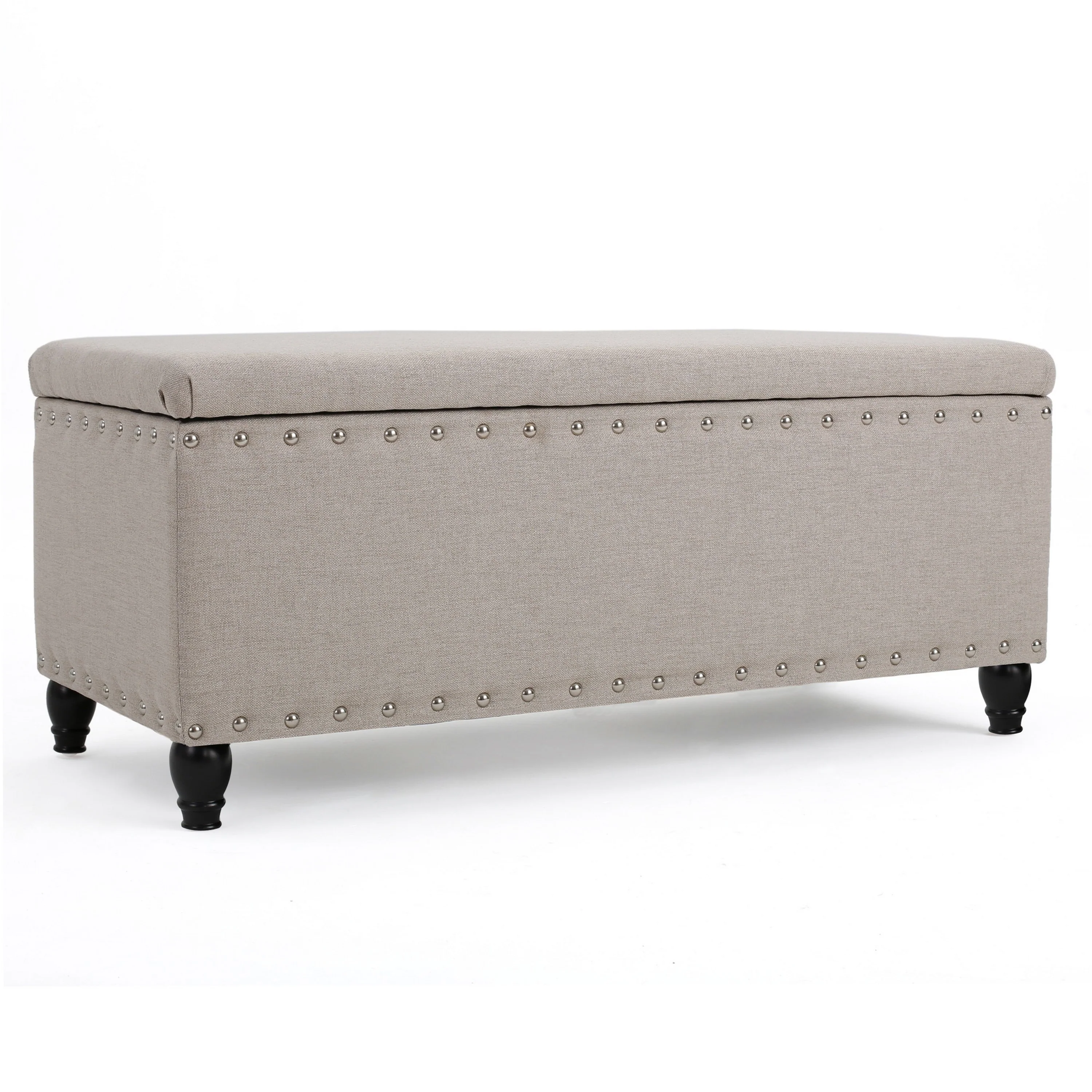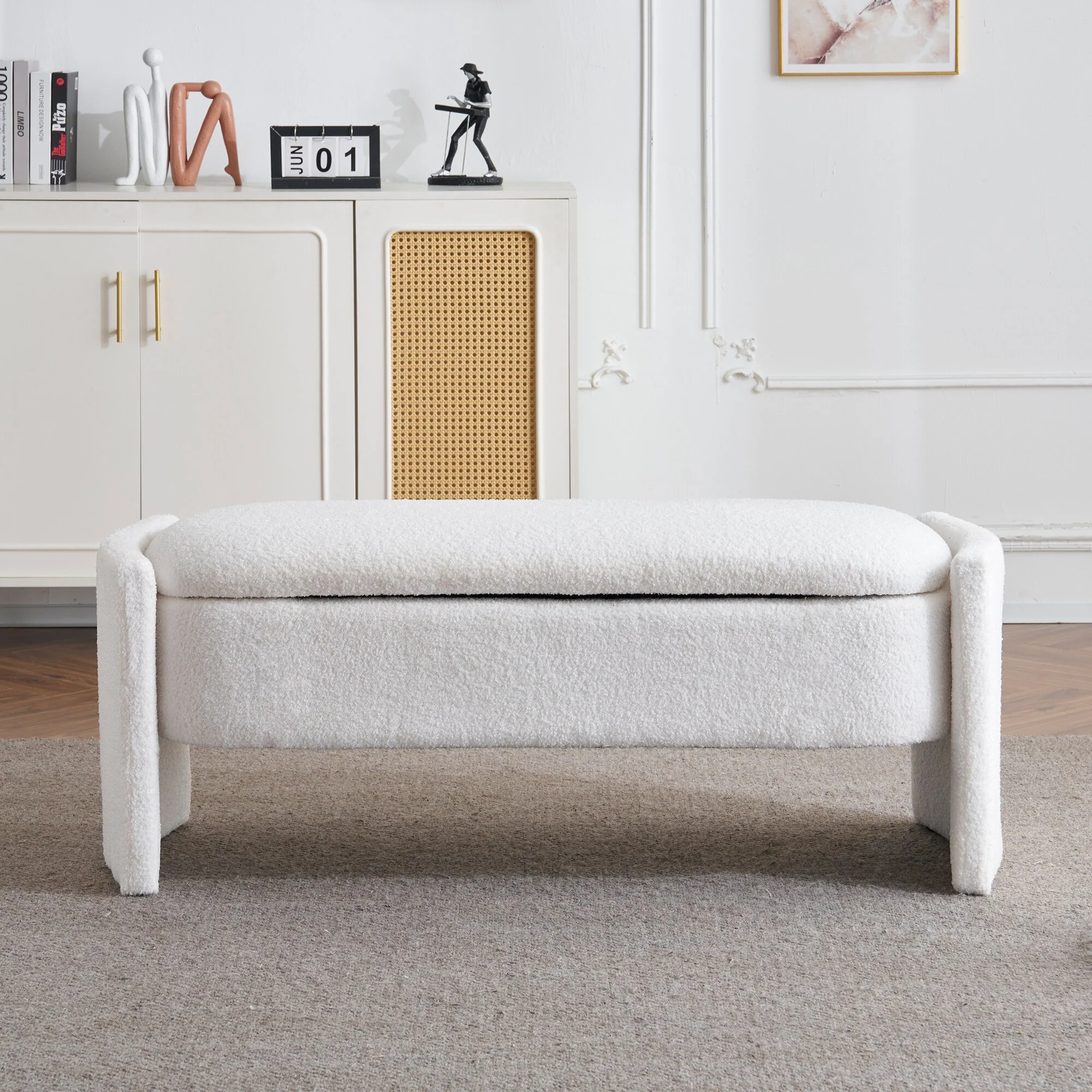Elegant Long - shaped Storage Ottoman Bench of boucle material
