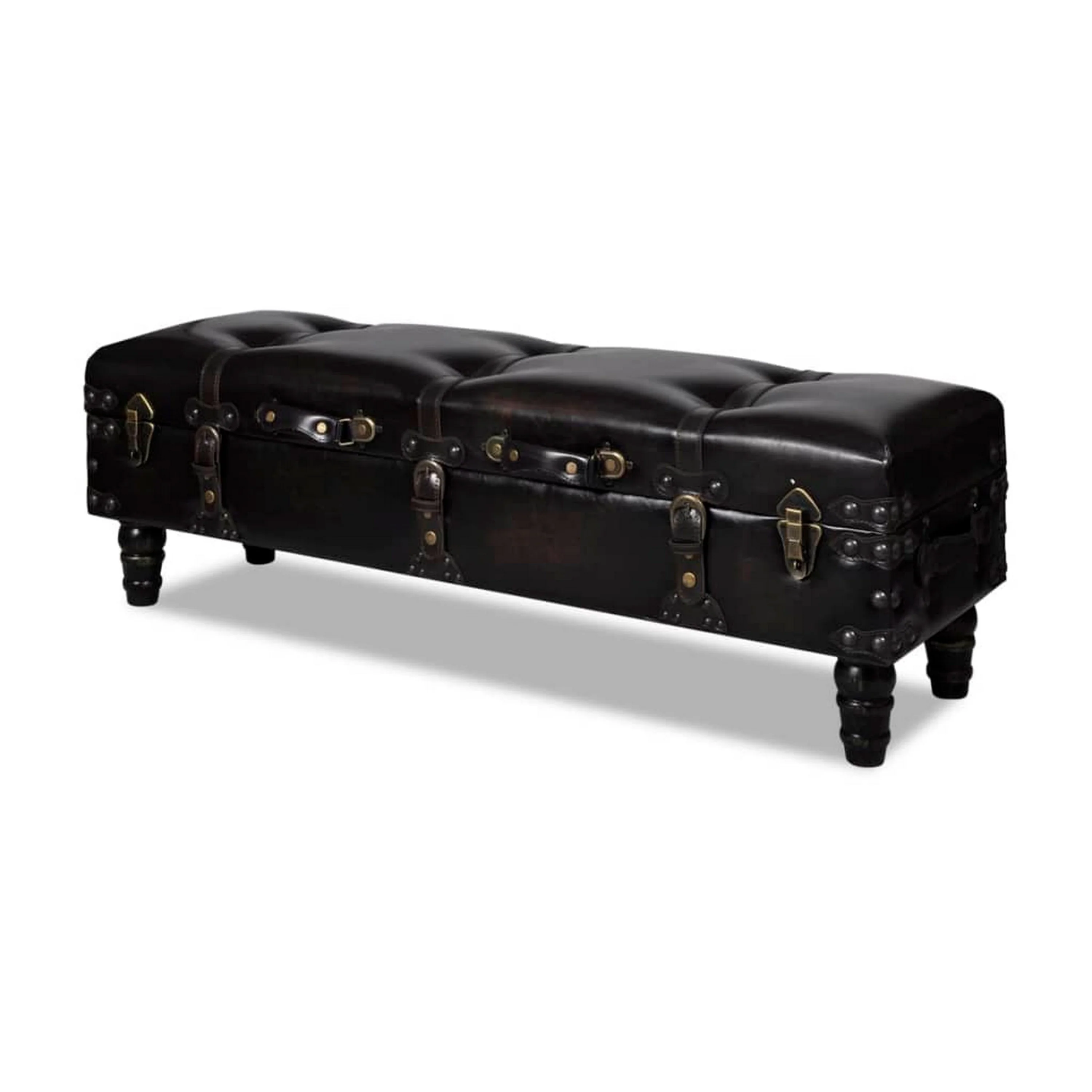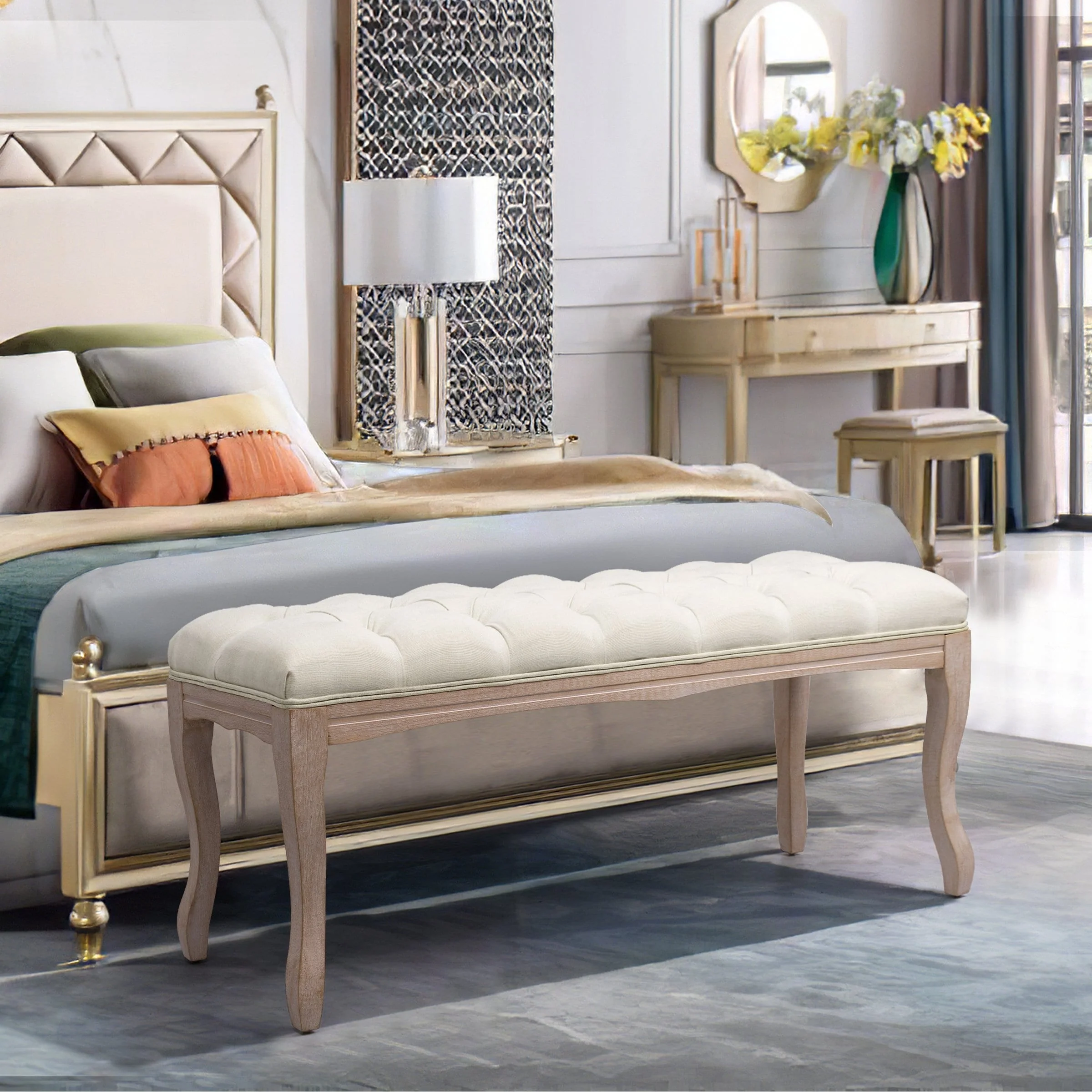 Wooden Tufted Upholstered Bed Bench Rectangular Ottoman