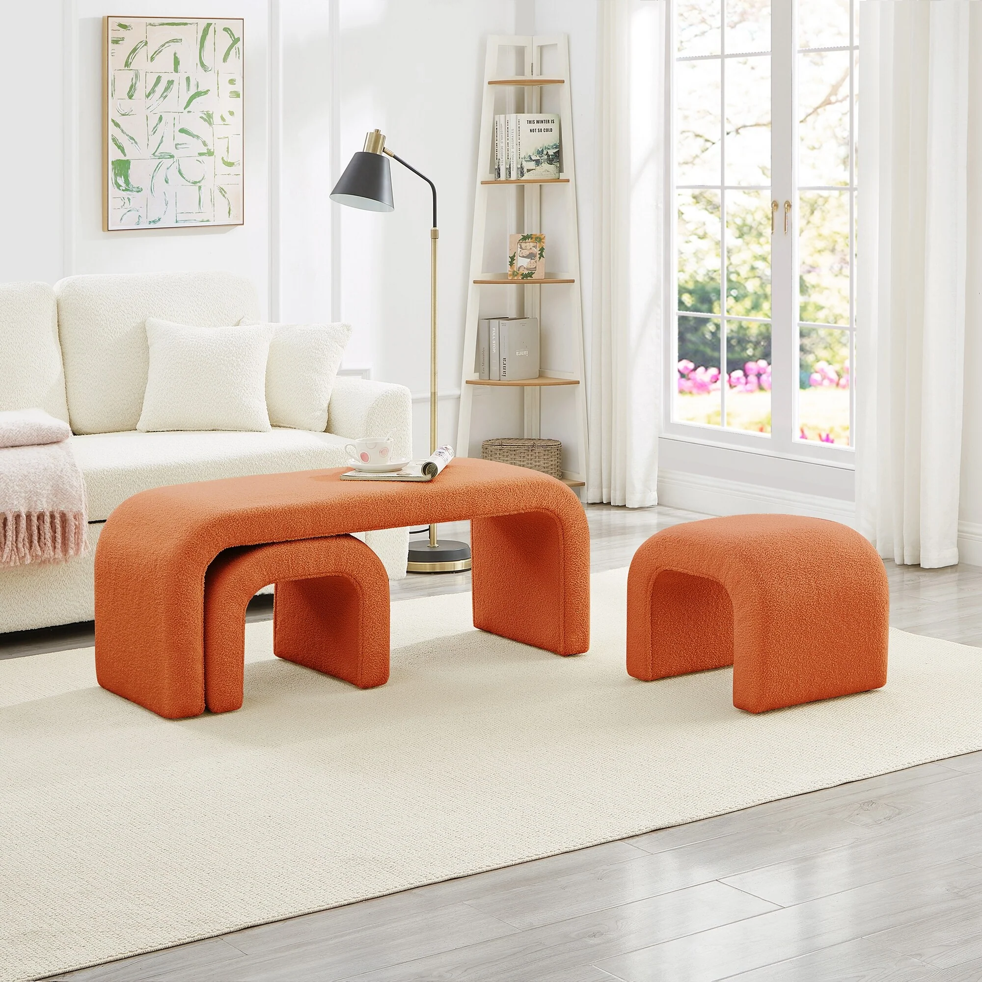 Set of 3 U-Shaped Modern Bench Teddy Ottoman Bench