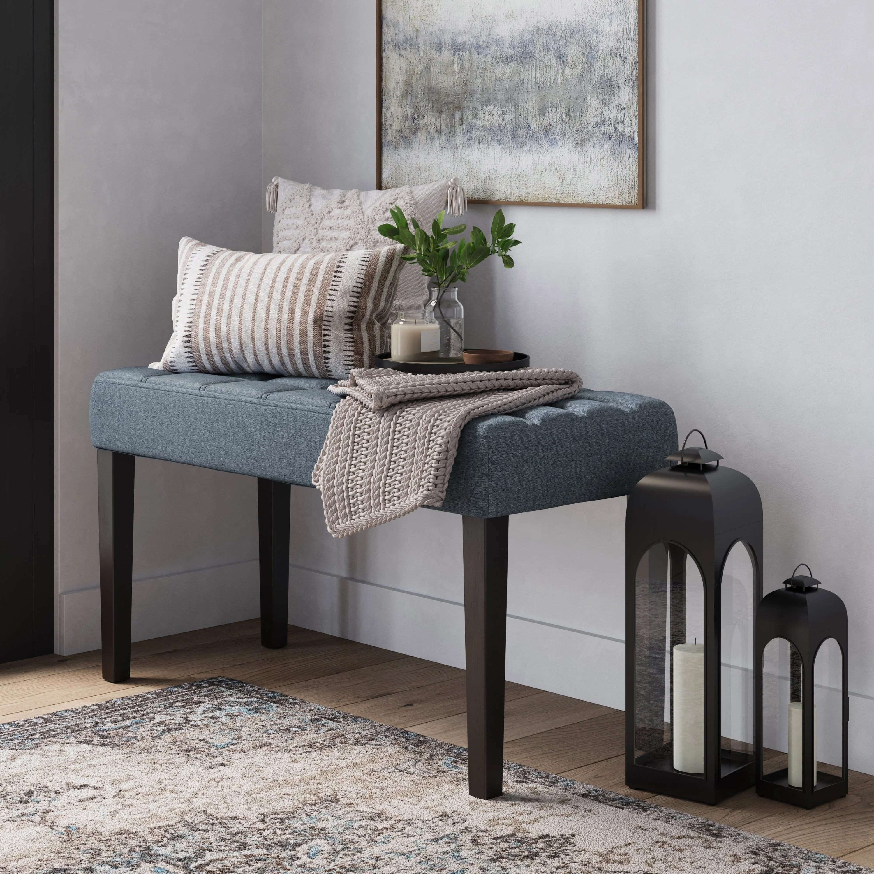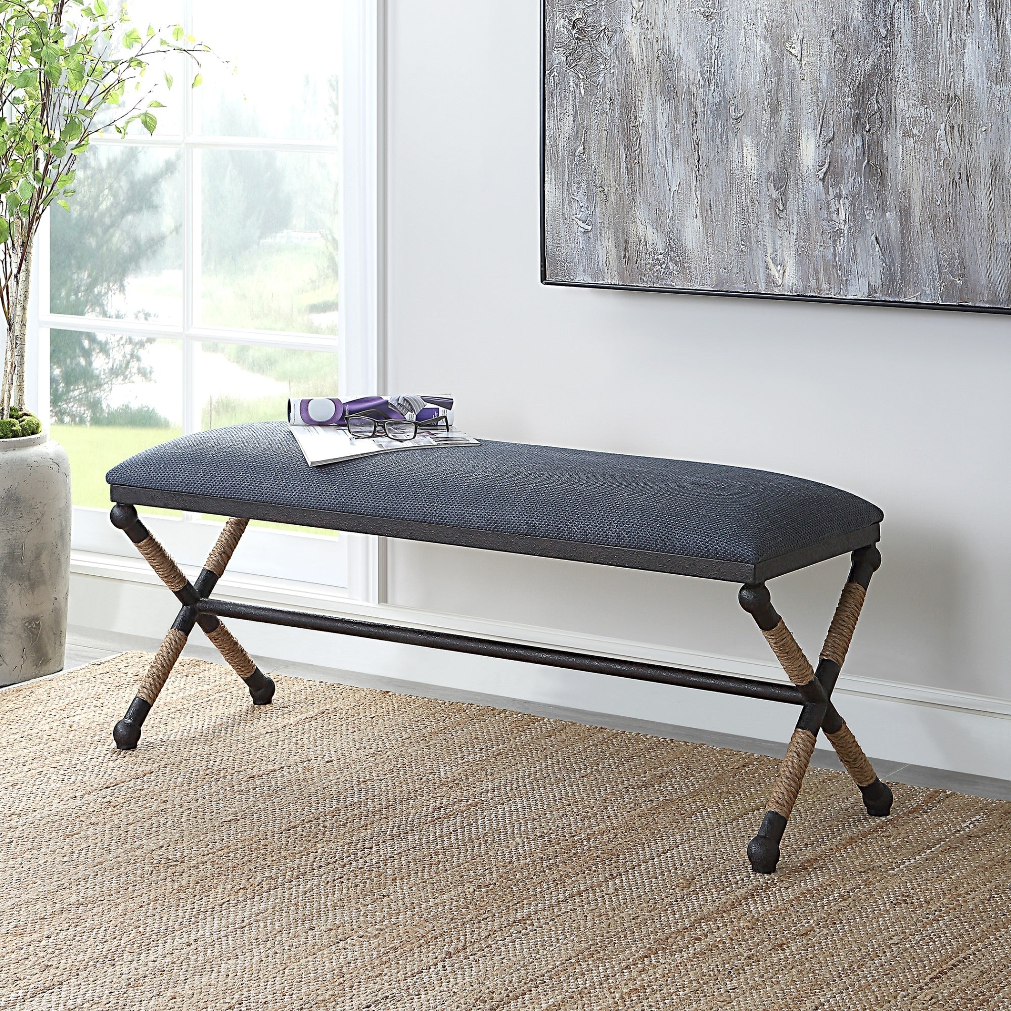 Cushioned Top Bench with Metal Frame - 47.75 - Navy Blue