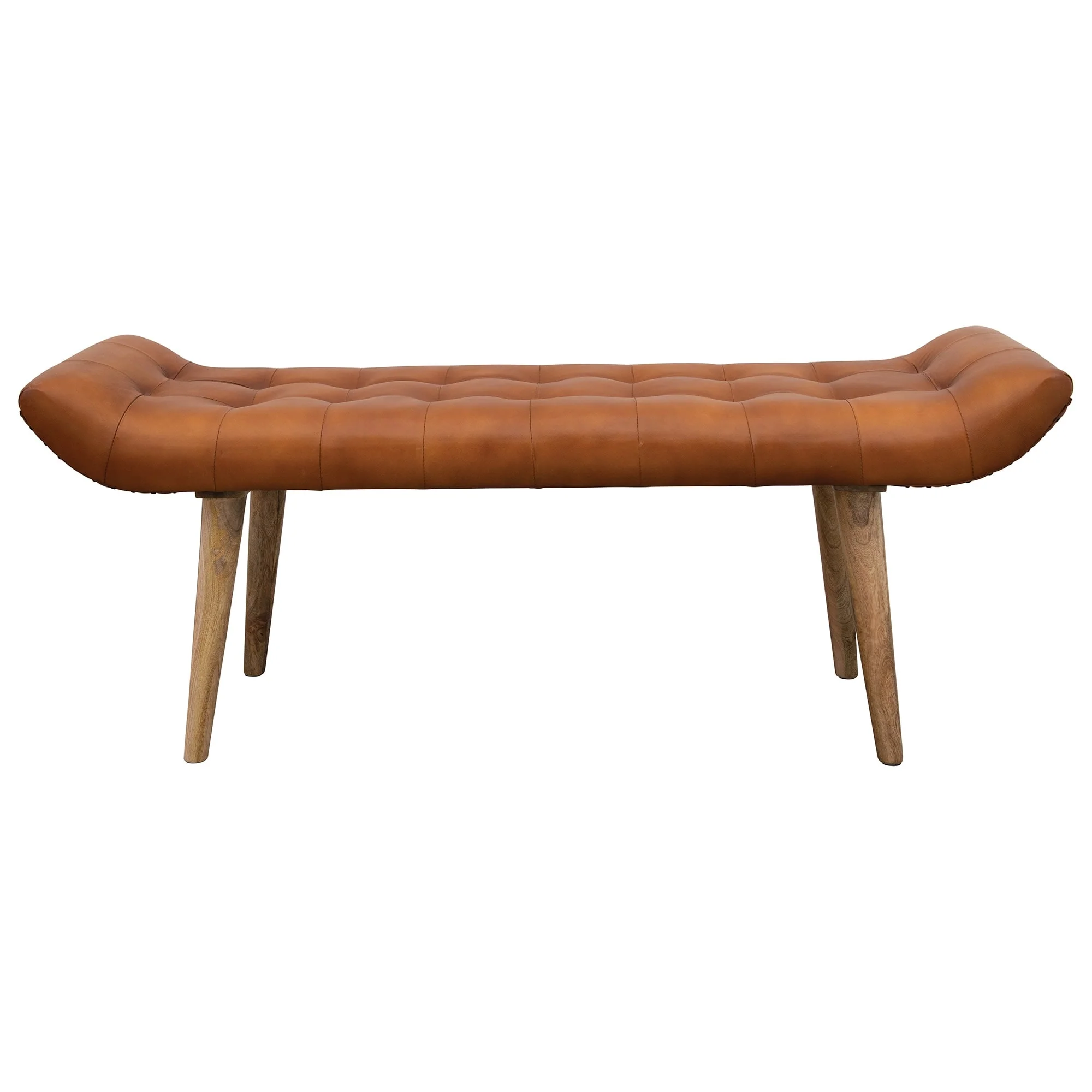 Wood and Goat Leather Bench