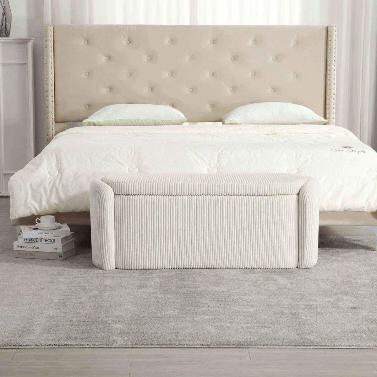 Entryway Upholstered Fabric Storage Ottoman