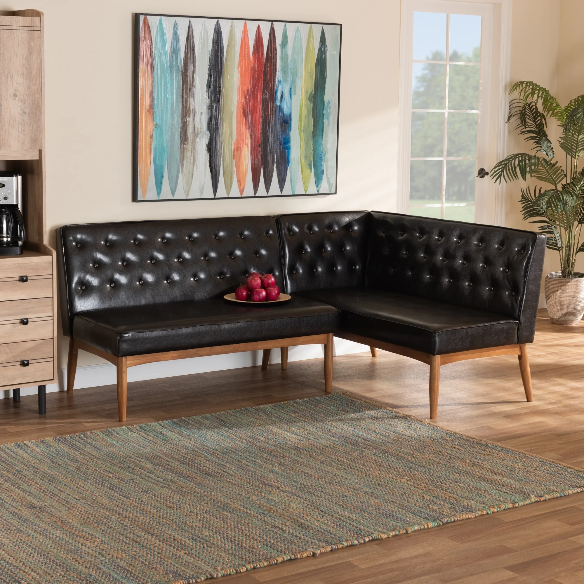 Riordan Mid-Century Modern 2-Piece Dining Nook Banquette Set