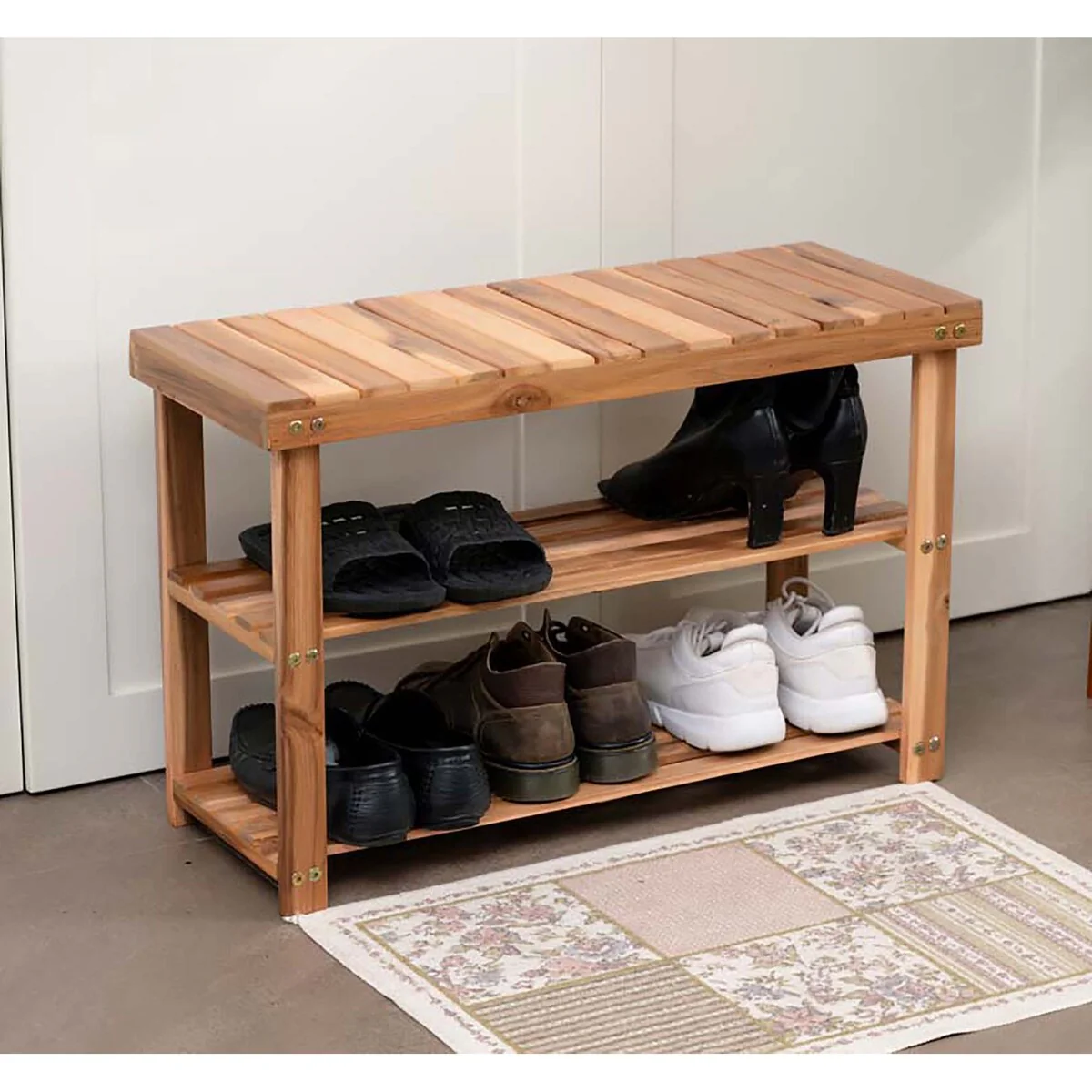 Entryway Wood Shoe Rack Bench