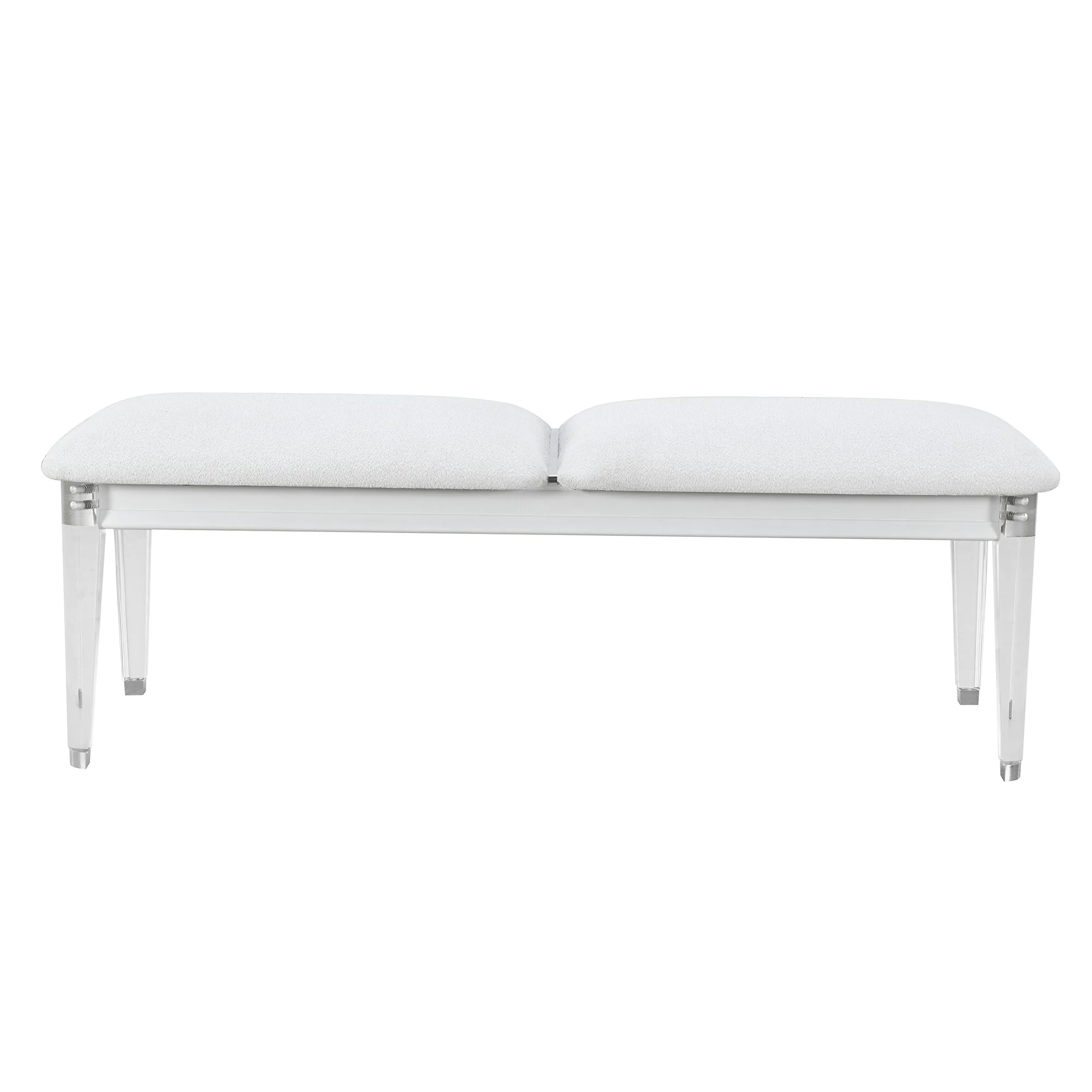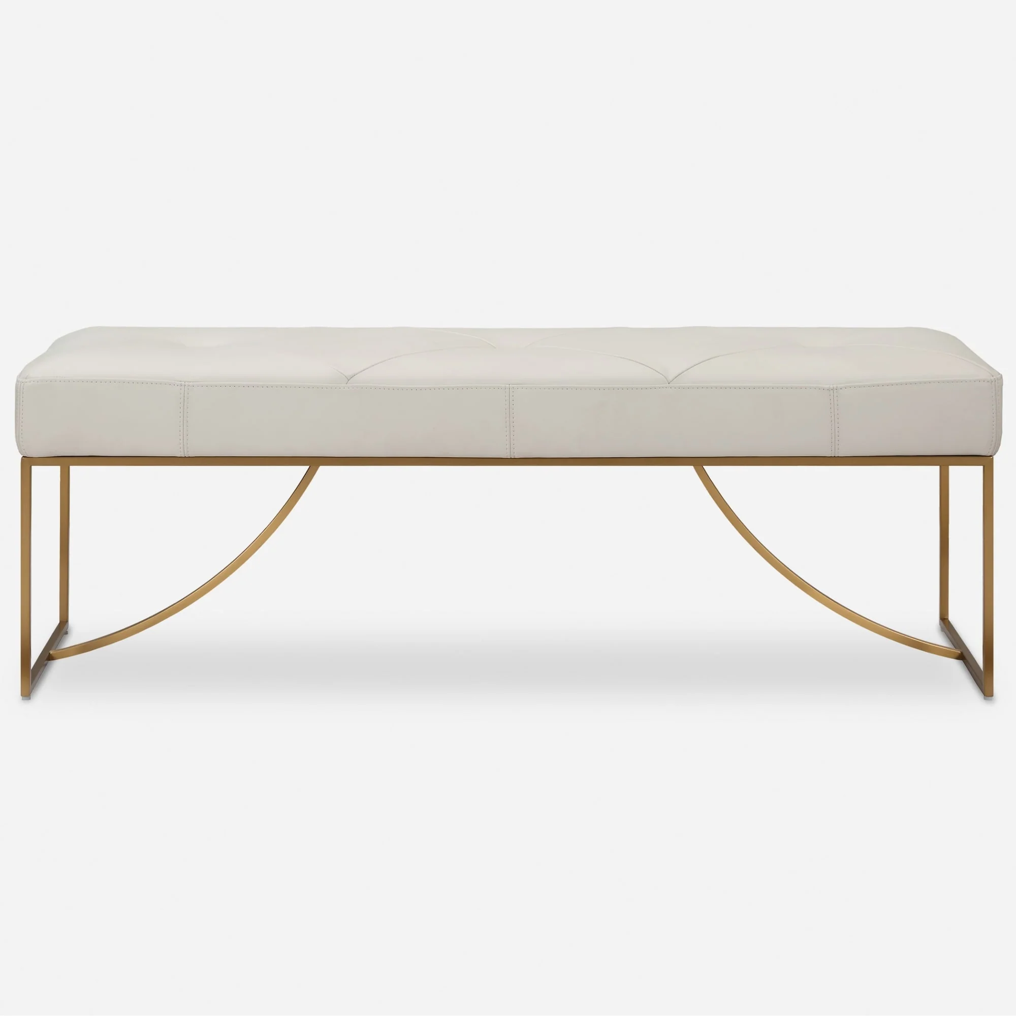 Diamond Tufted Leather Upholstered Bench - 53 - Cream