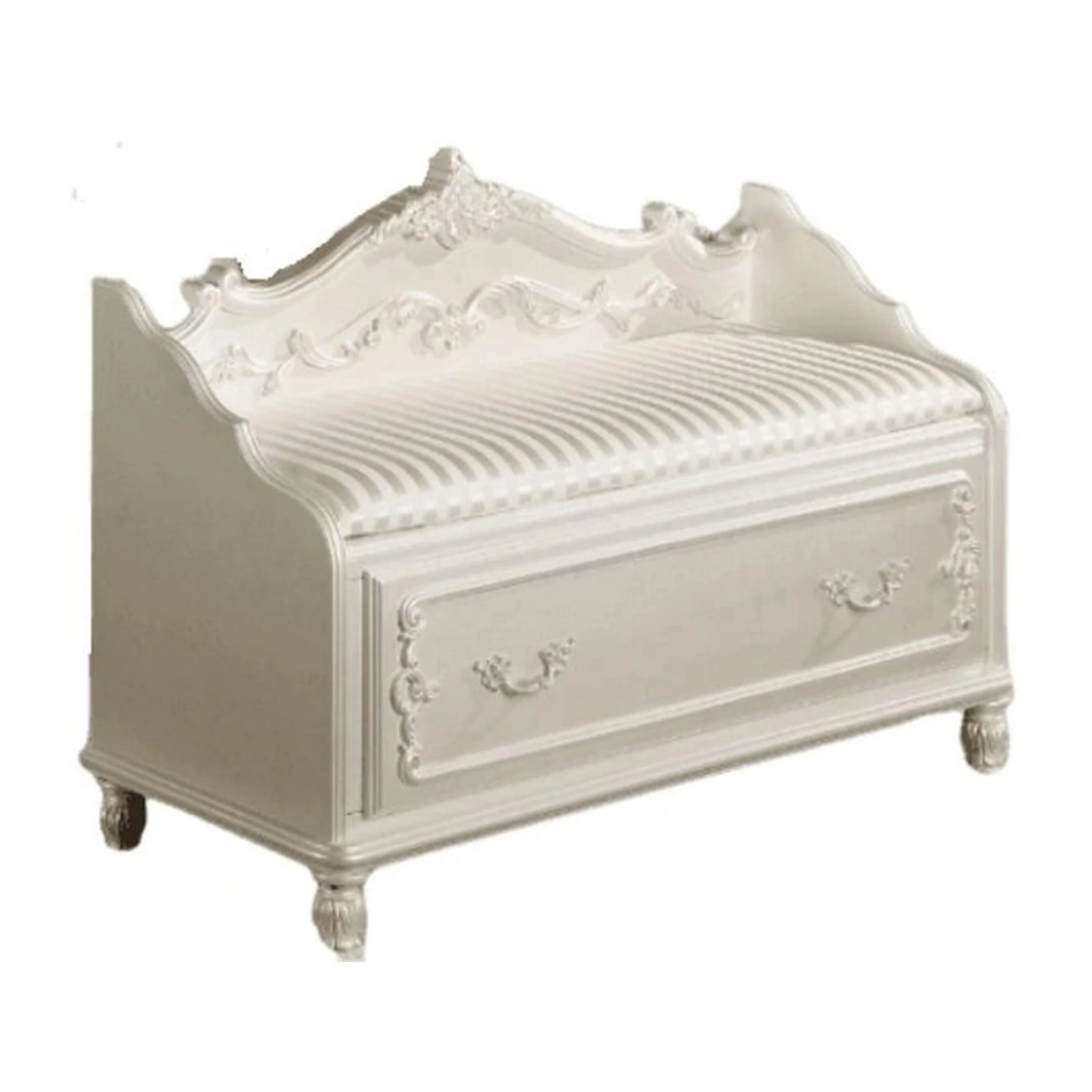 Ziva Accent Bench, Storage Drawer, Scrollwork, Pearl White, 41 Inch