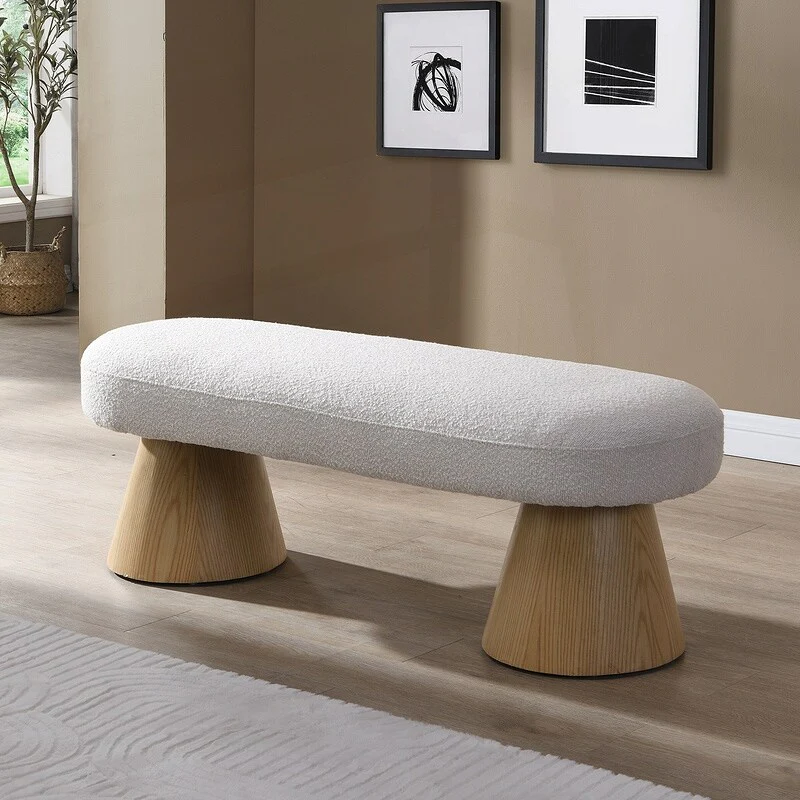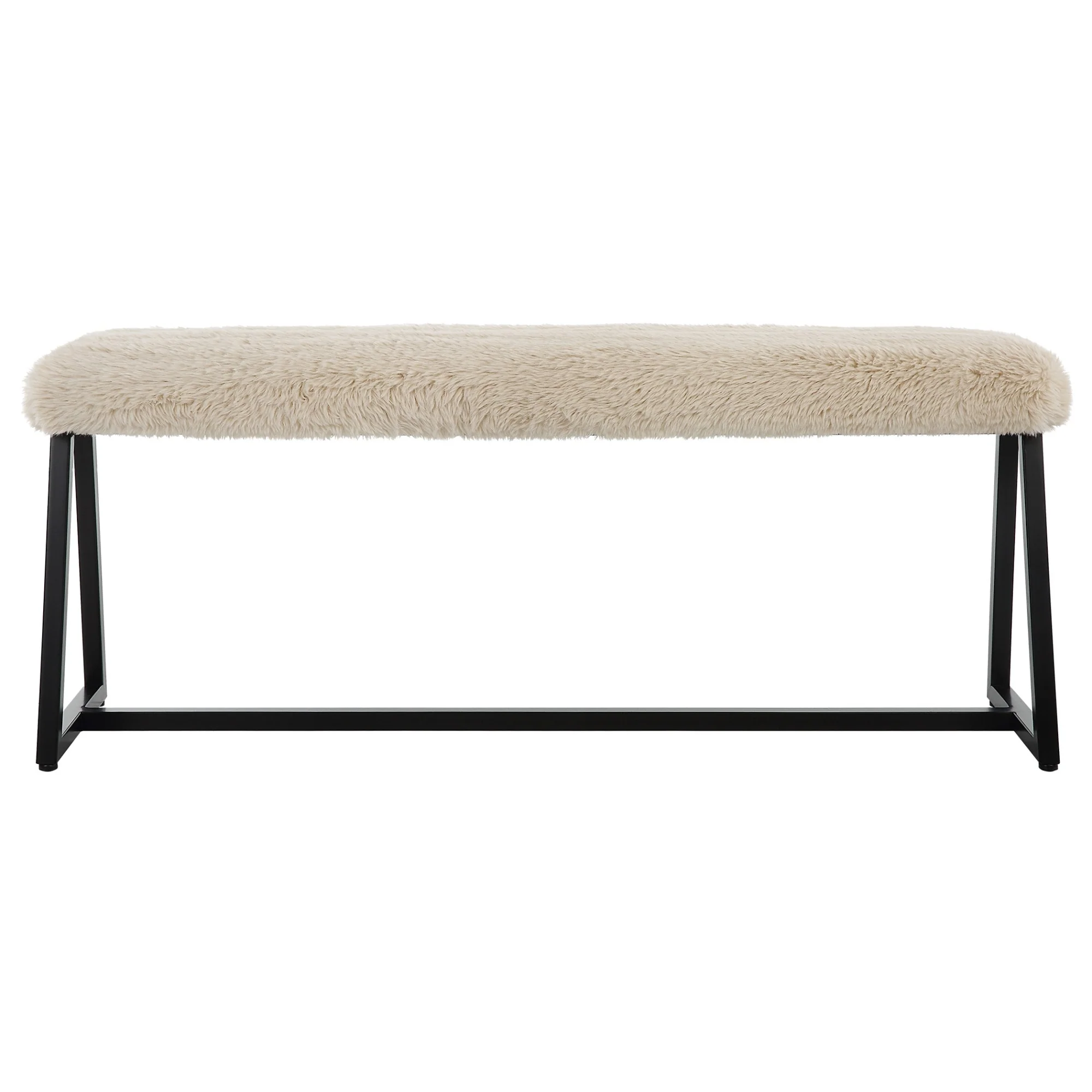 Shearling Cushioned Top Small Bench - 22.75 - White and Black