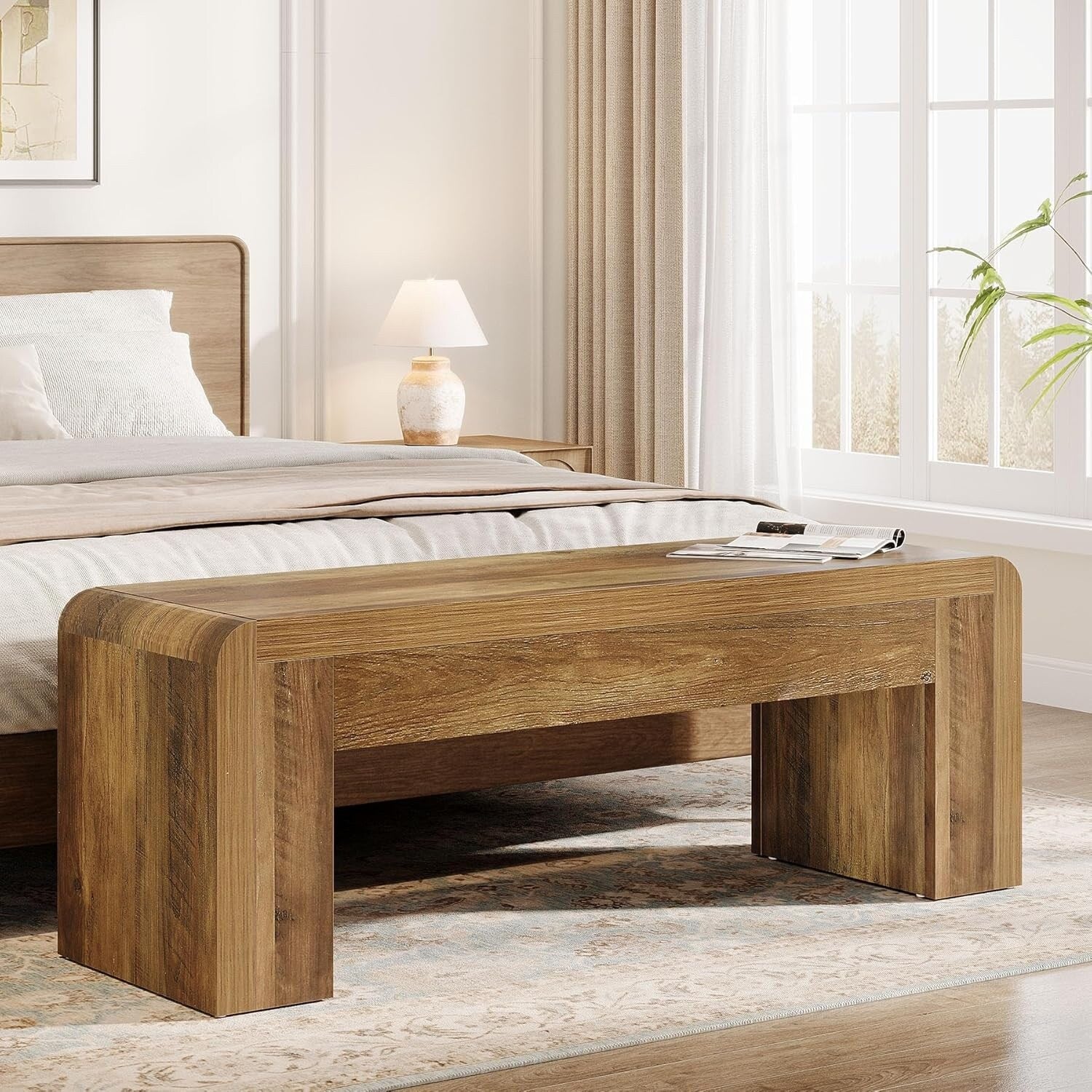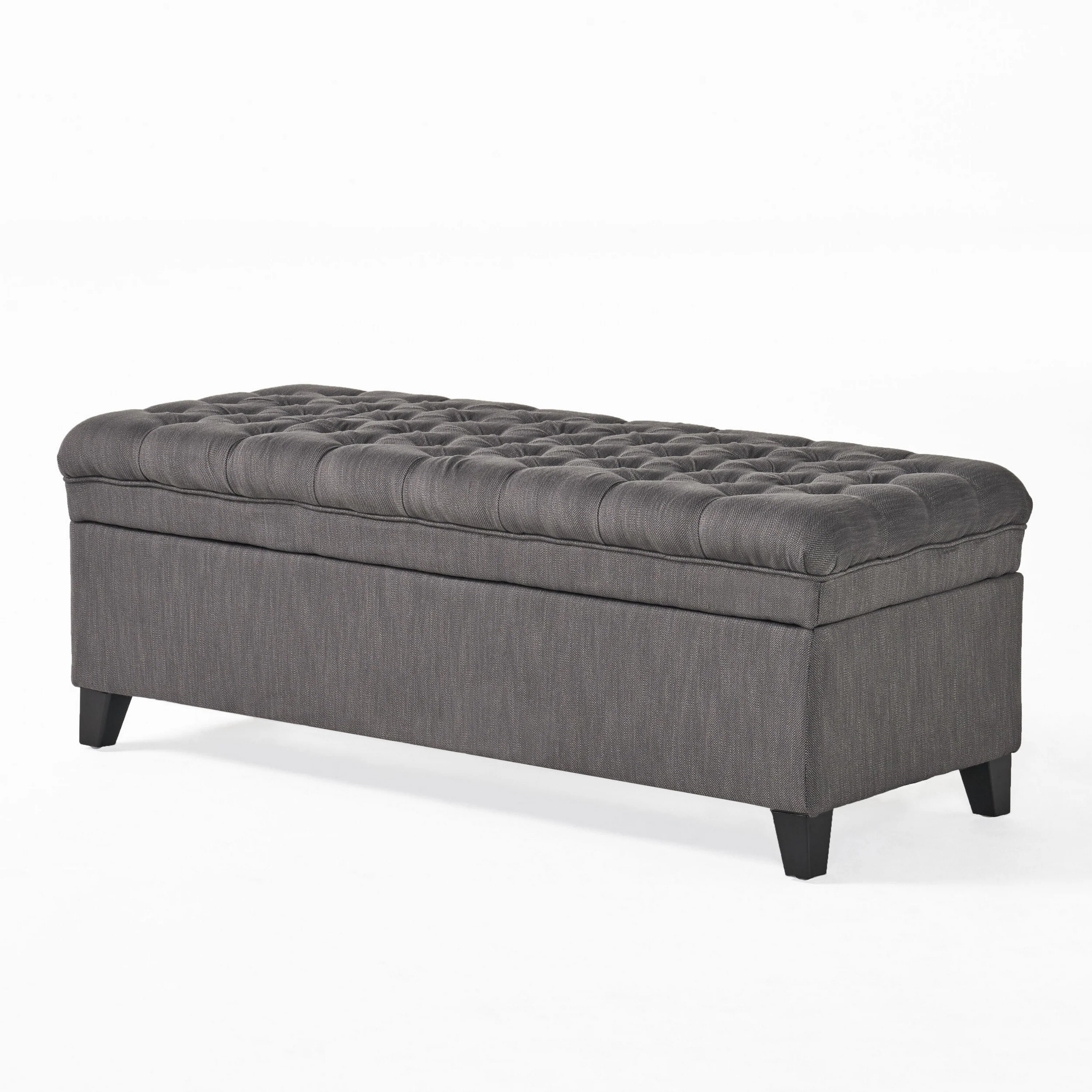 Farmhouse Style Fabric Solid Wood Storage Bench with Flip Top