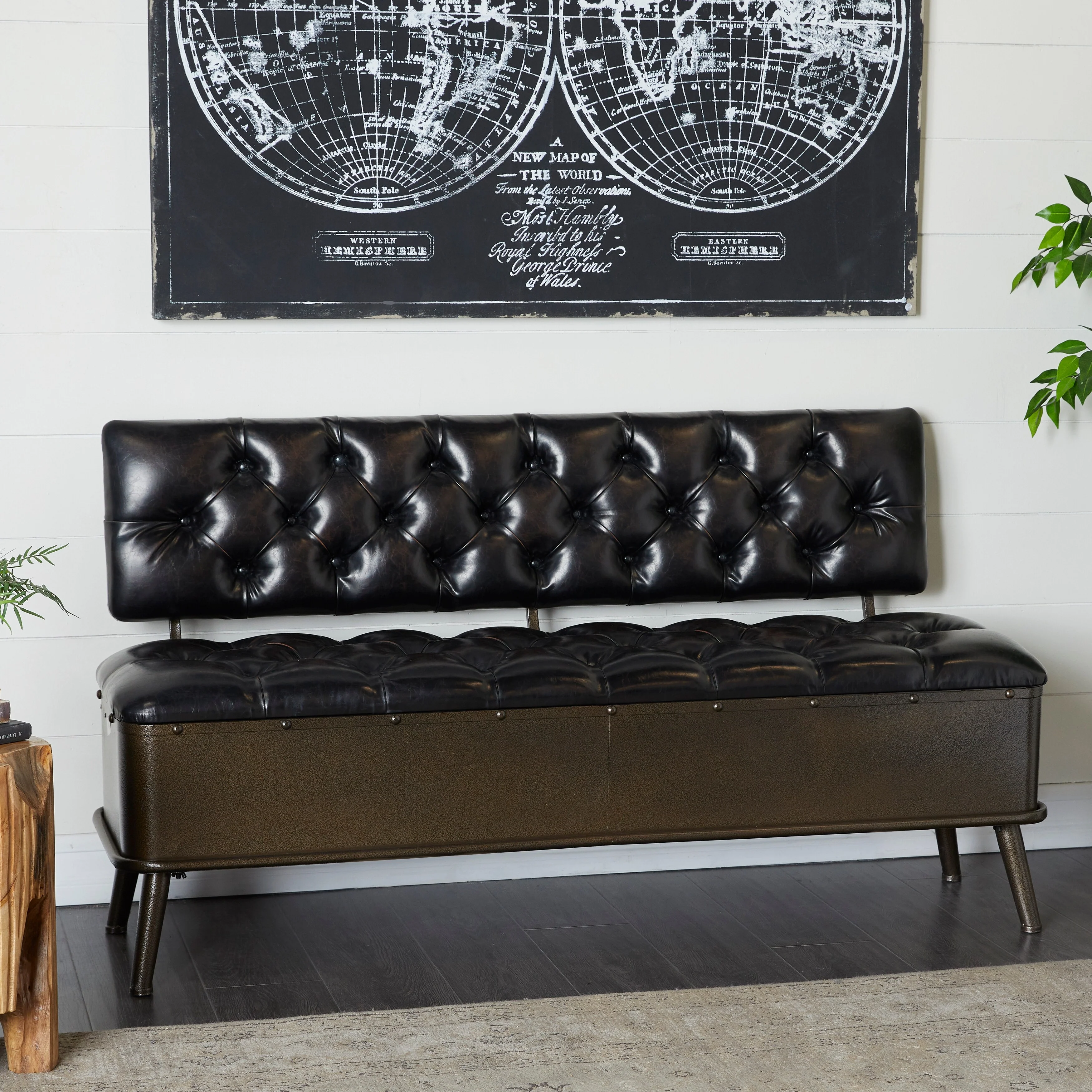 Benzara Two-tone Brown Leather and Metal Storage Bench