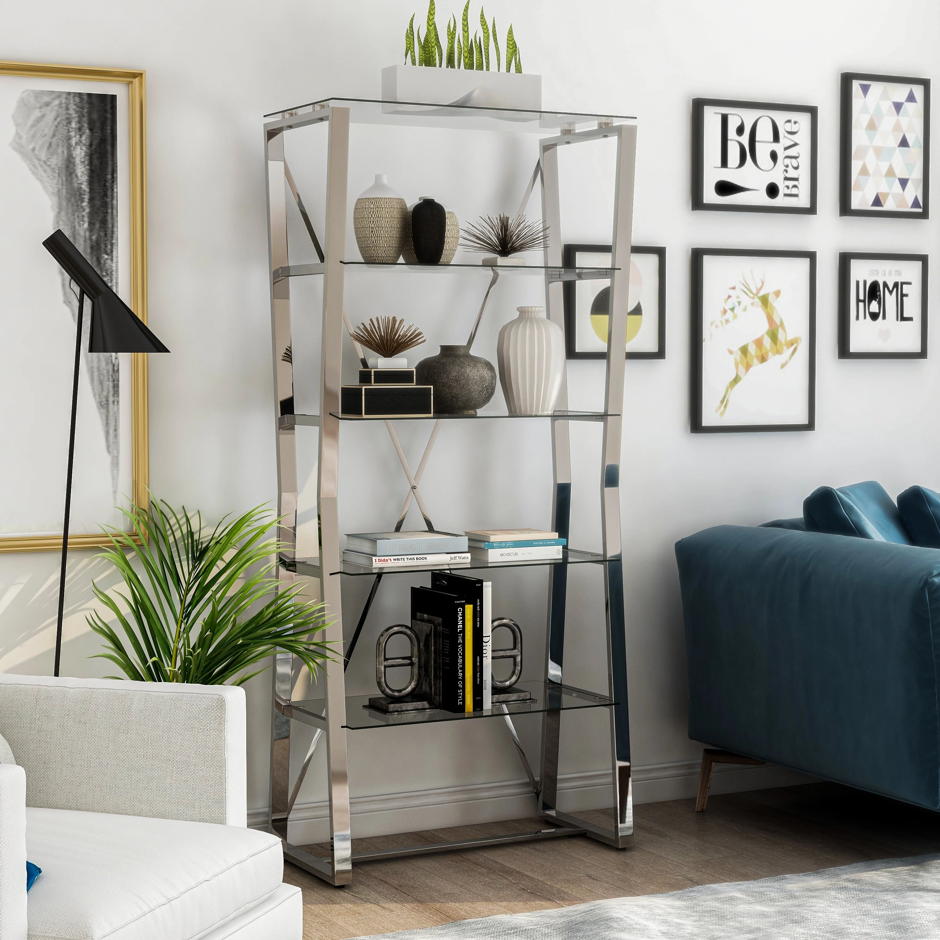 Ren Home Anita Solid Wood Tall 6 Shelf Open Bookcase