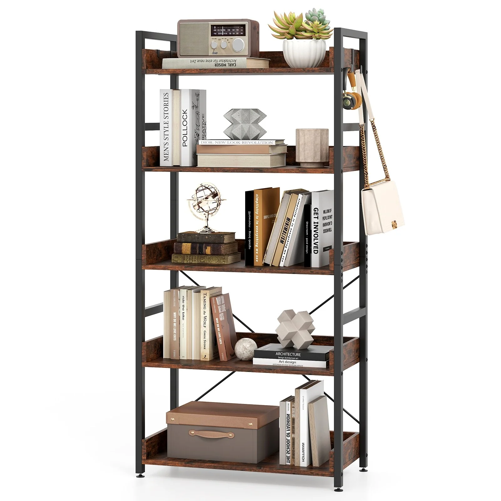 GIMMYFIVE 5 Tier Corner Bookshelf, Industrial Bookshelves