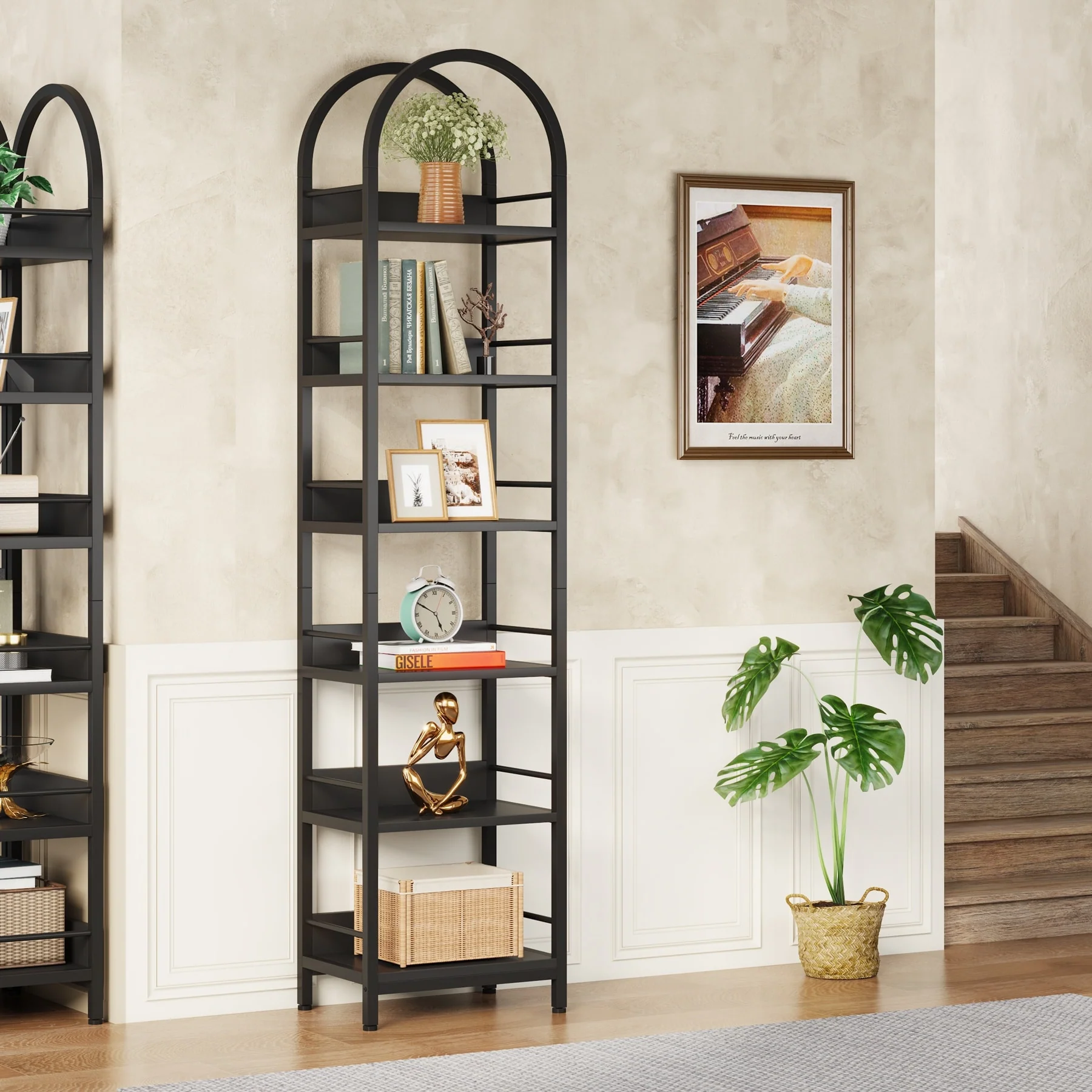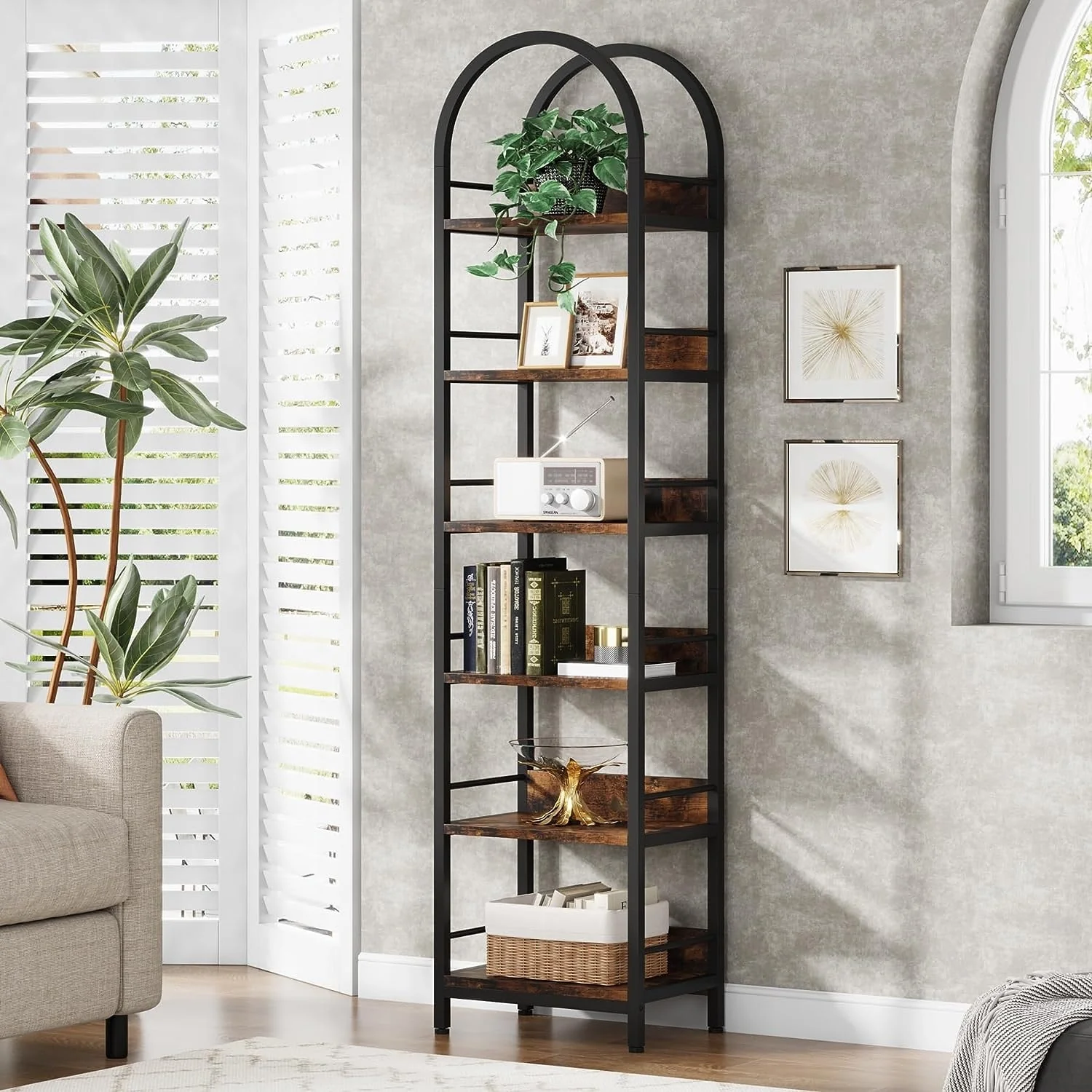 6-Tier Open Bookshelf, Tall Arched Bookcase Narrow Bookshelf