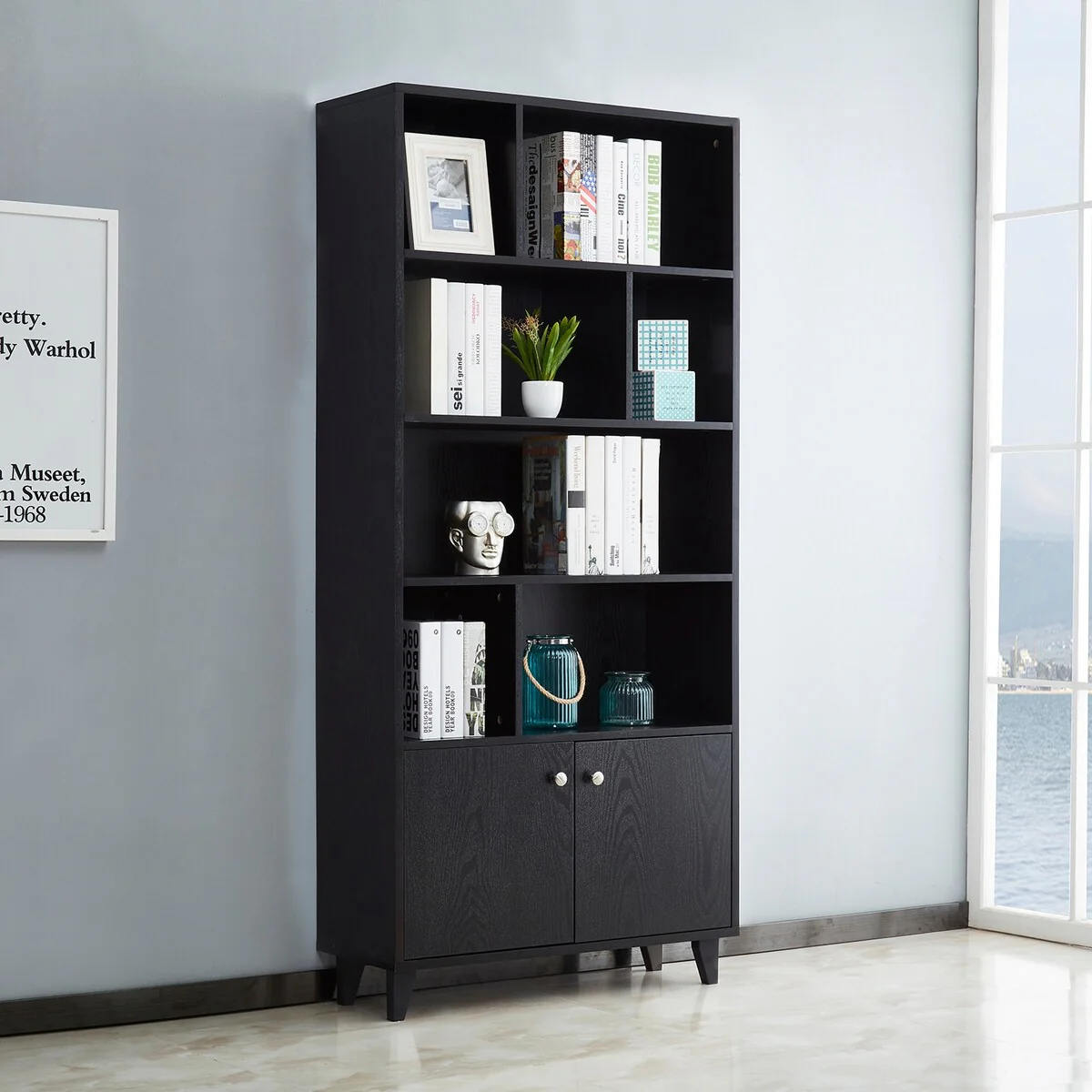 Five shelf wooden bookcase display cabinet