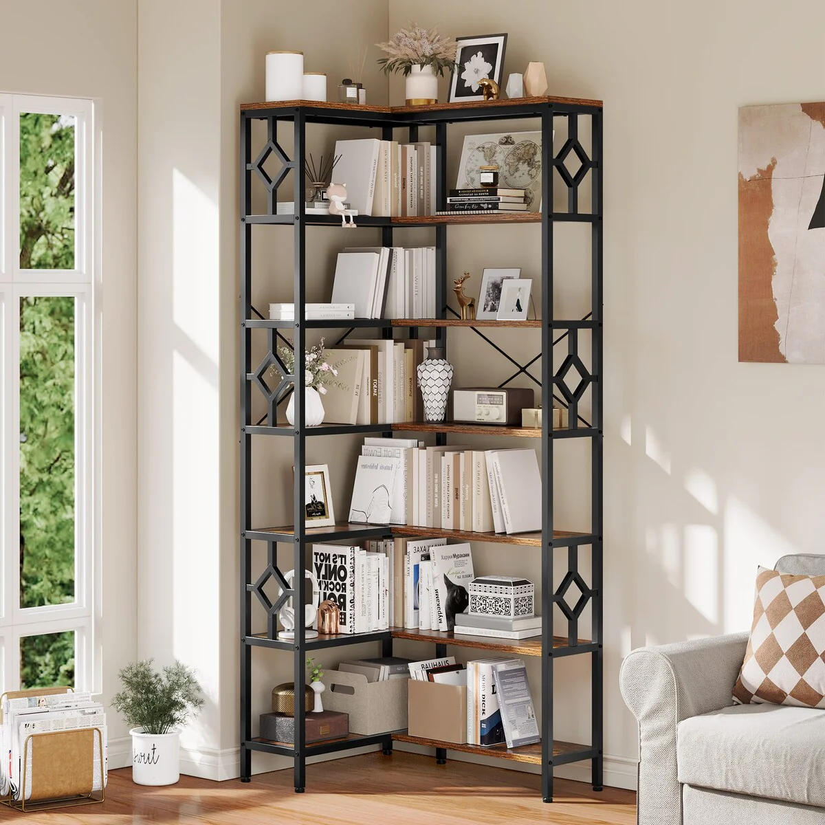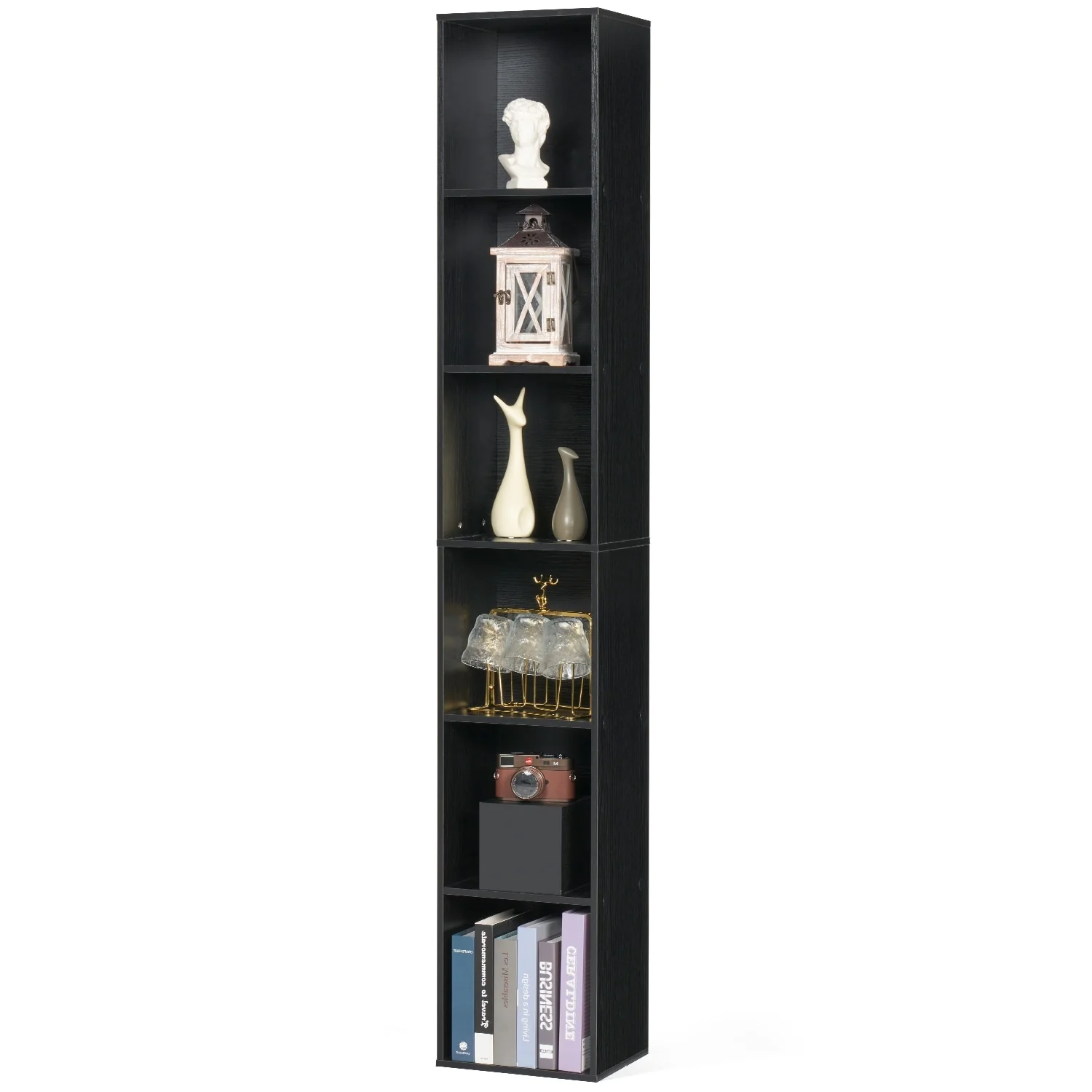 Tall Narrow Bookshelf, 6-Tier Cube Display Rack