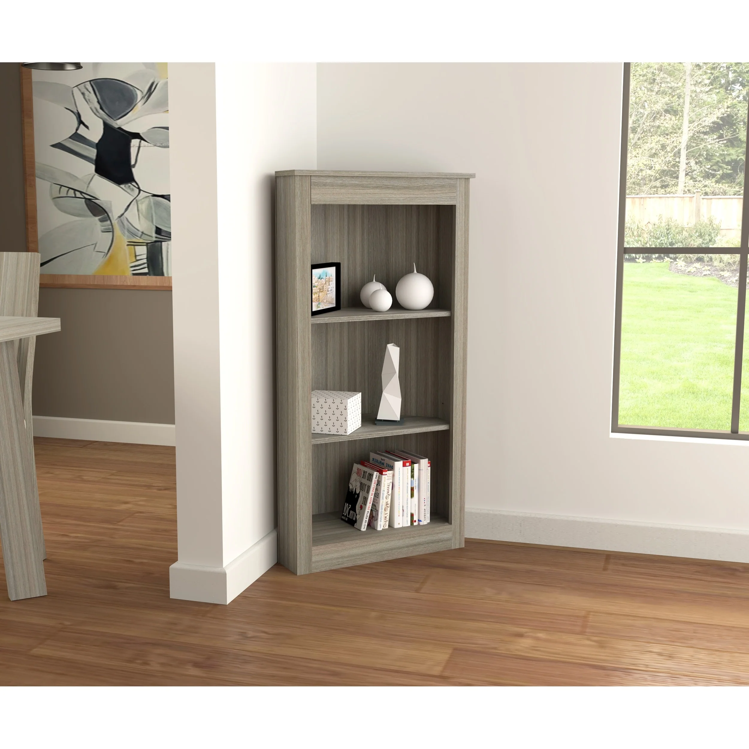 Inval Three Shelf Corner Bookshelf