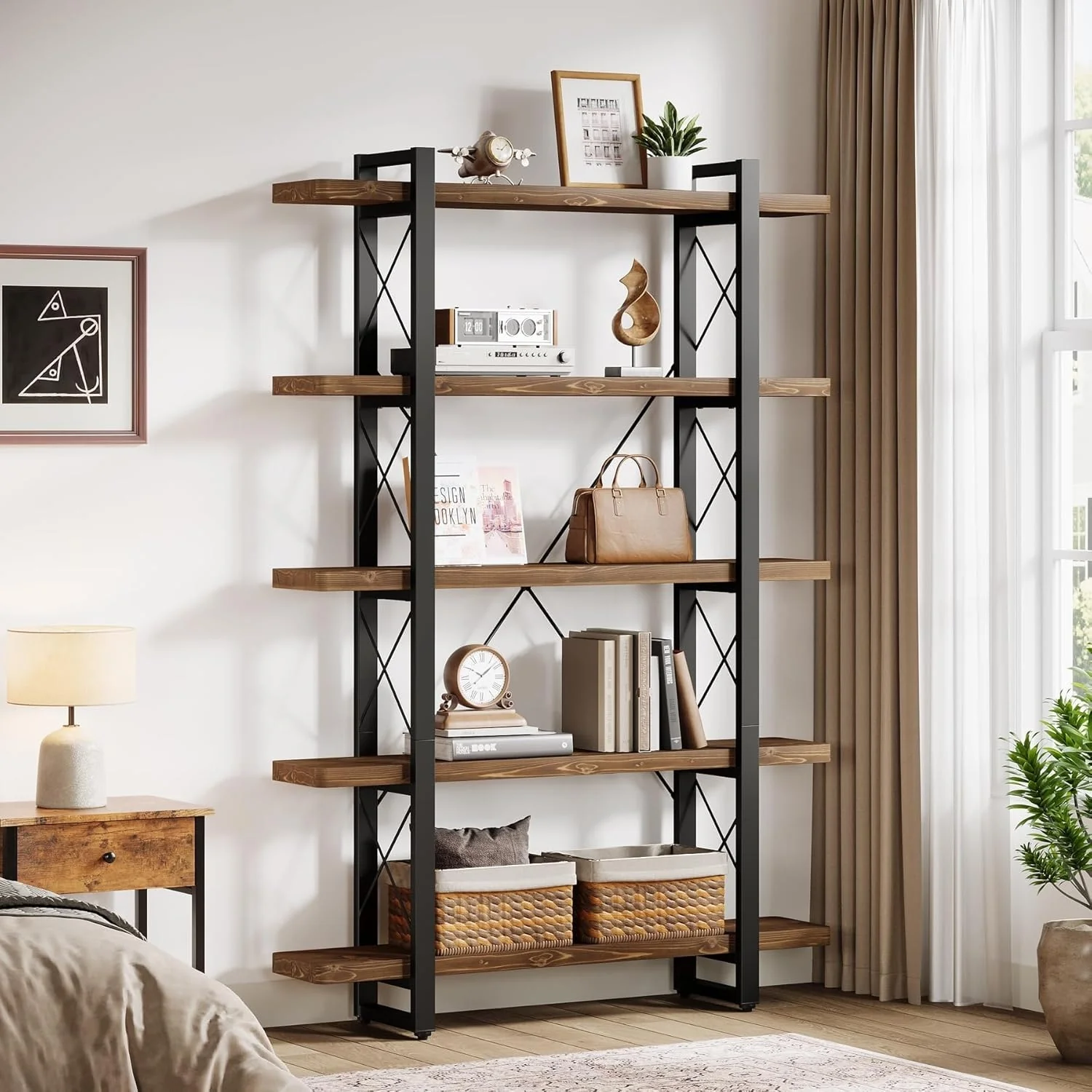 71.6 Inches Tall Solid Wood Bookshelf Bookcase with 5 Shelf