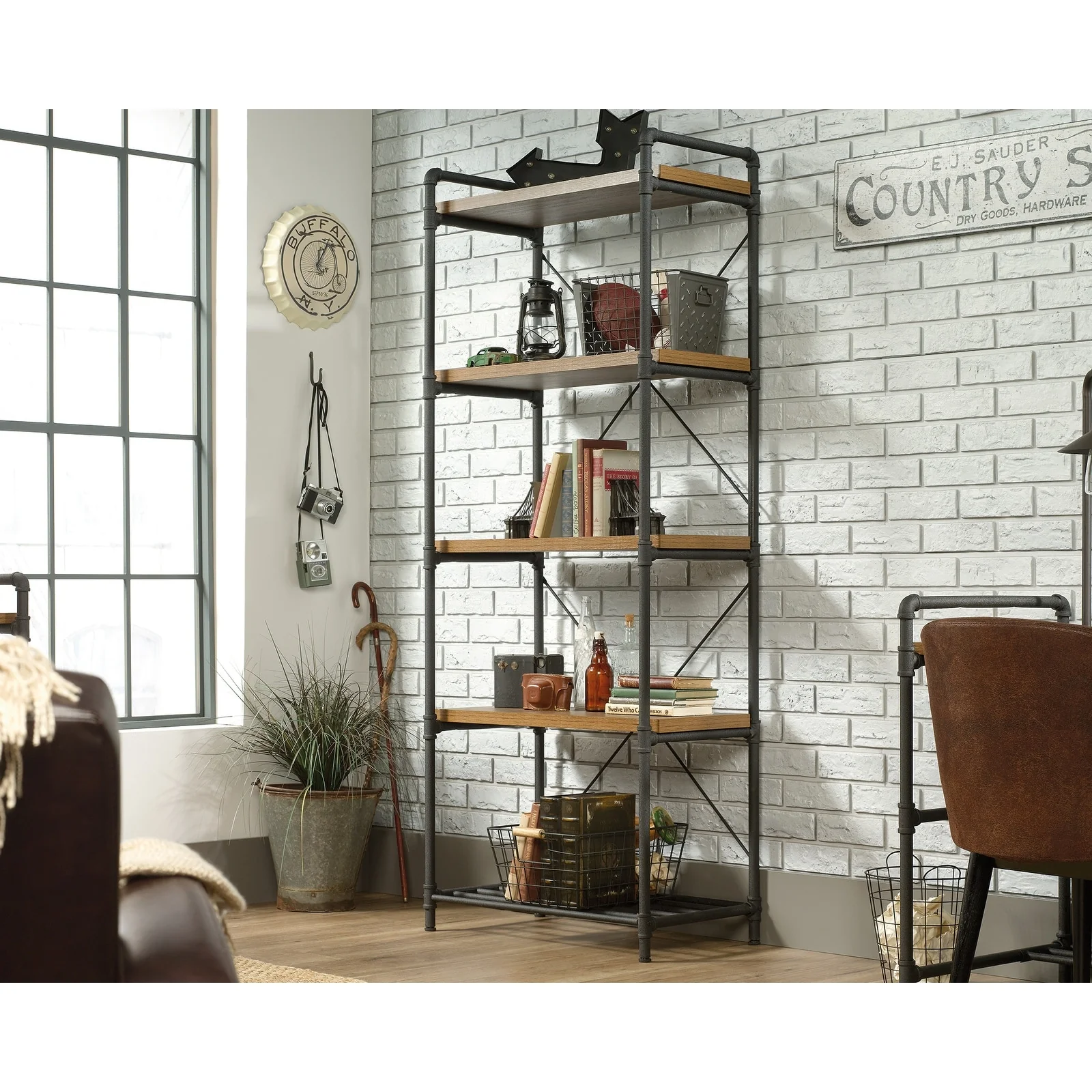 Ailis Brown Pine Wood/ Metal 56-inch Etagere Bookcase