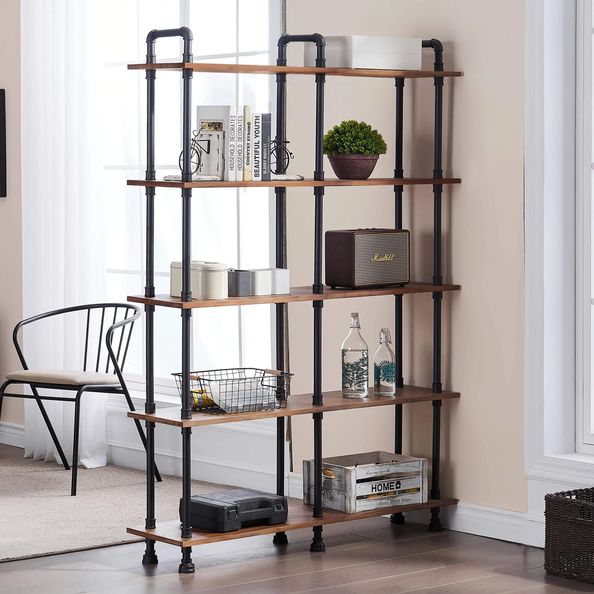 Metal Pipe shelf with fir wood