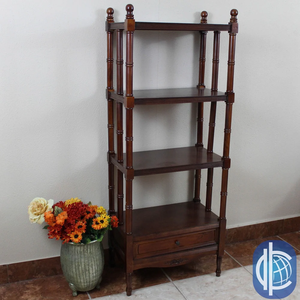 Windsor 4-tier/ 1-drawer Hand-carved Hardwood Bookshelf