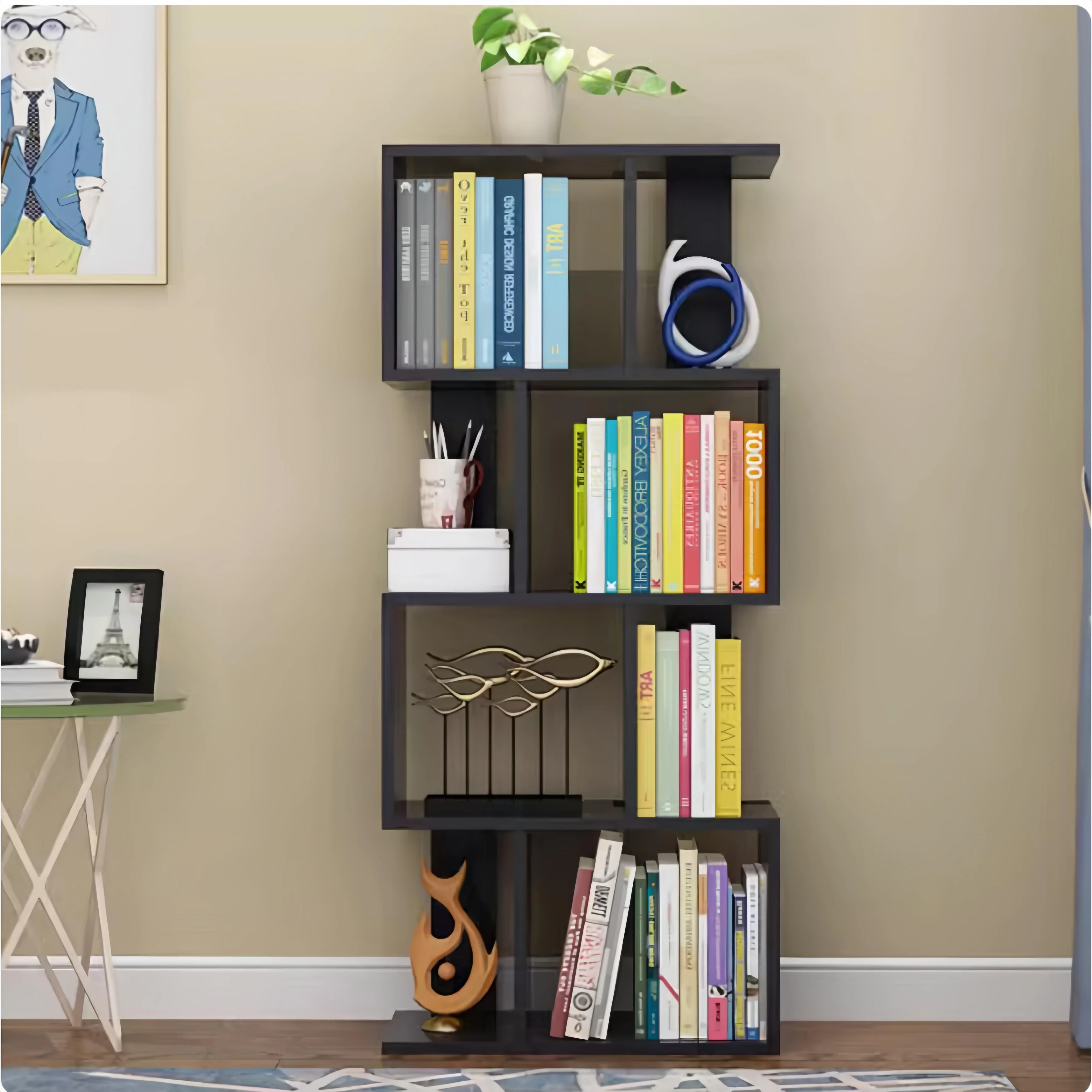 4 Tier Storage shelf S Shaped Bookcase