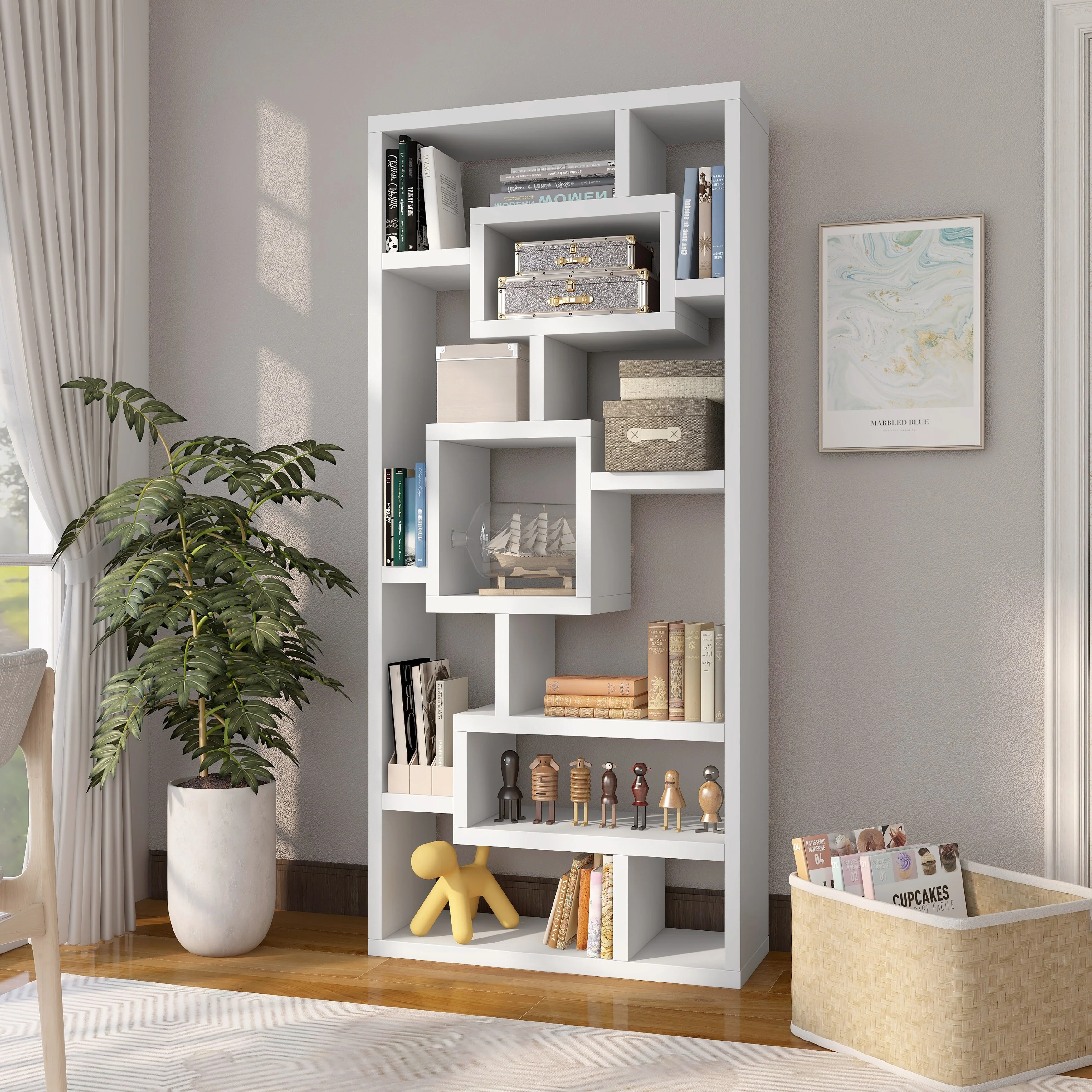 DH BASIC Modern Geometric 11-Shelf Open-Back Bookcase by Denhour