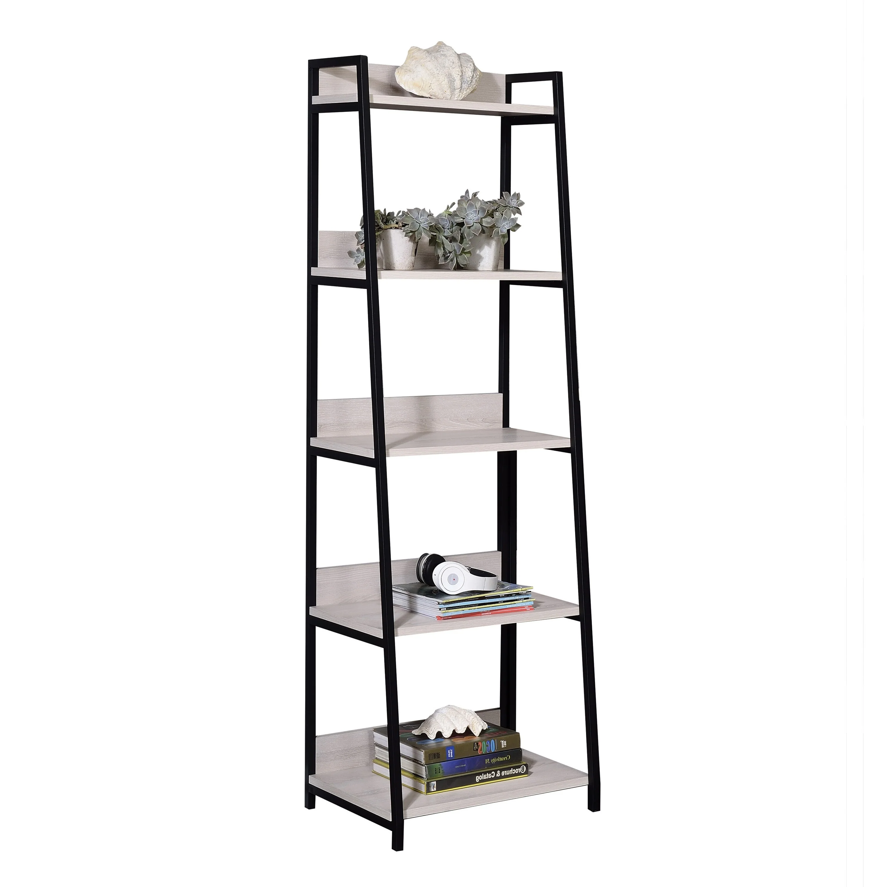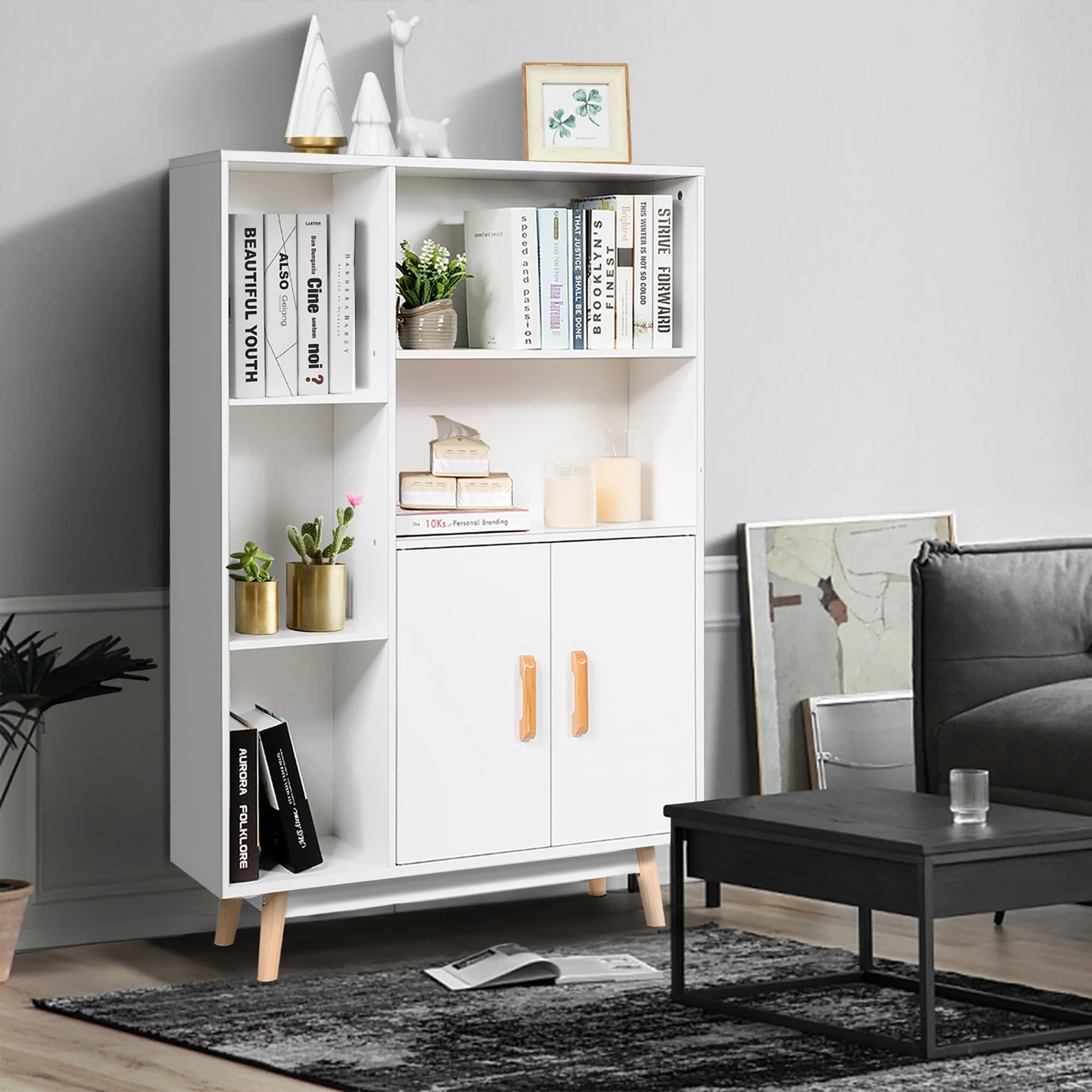 70” White Wood Bookshelf with 5 Storage Shelves for Living Room